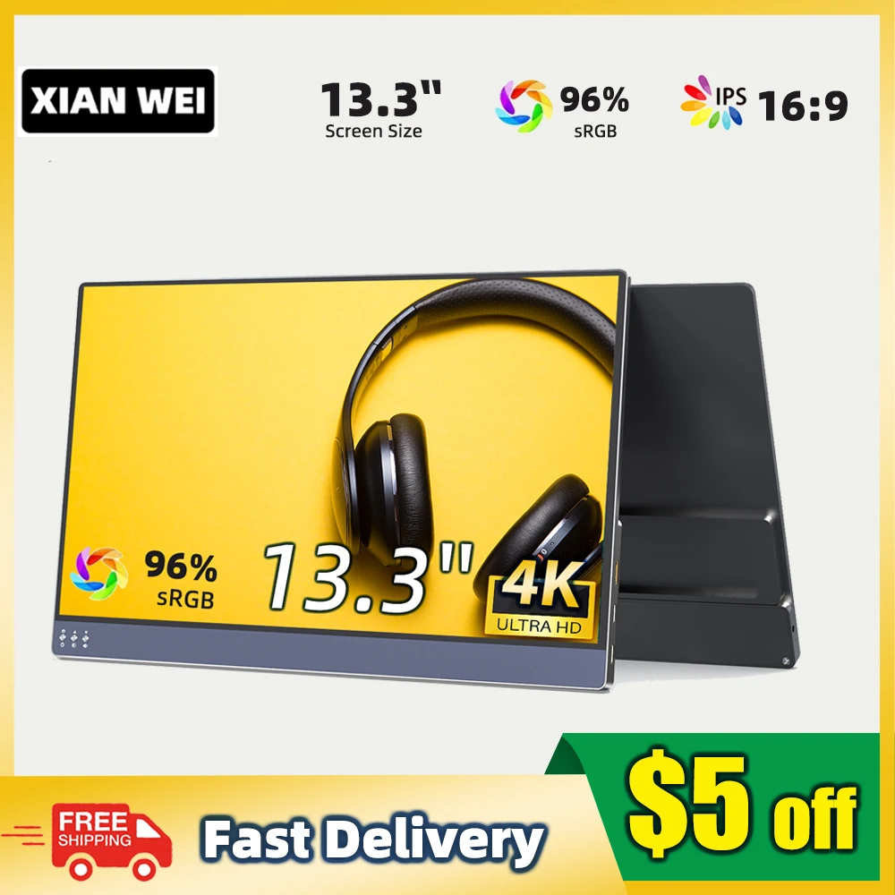 • Pantalla 4K UHD:Experimente imágenes superiores con la pantalla 4K UHD del monitor portátil 4K de 13,3 pulgadas XIANWEI, que ofrece una resolución de 3840x2160 para imágenes nítidas y claras.
