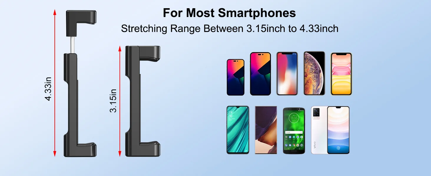 Our product includes a Bluetooth remote control. The wireless remote control has a range of up to 33ft, which can seamlessly connect to your smartphone, providing a reliable and stable connection. No more worrying about losing signal or experiencing delays. Works with all major smartphone brands, giving you the freedom to capture the perfect shot from a distance. No more awkward arm extensions or rushed selfies!