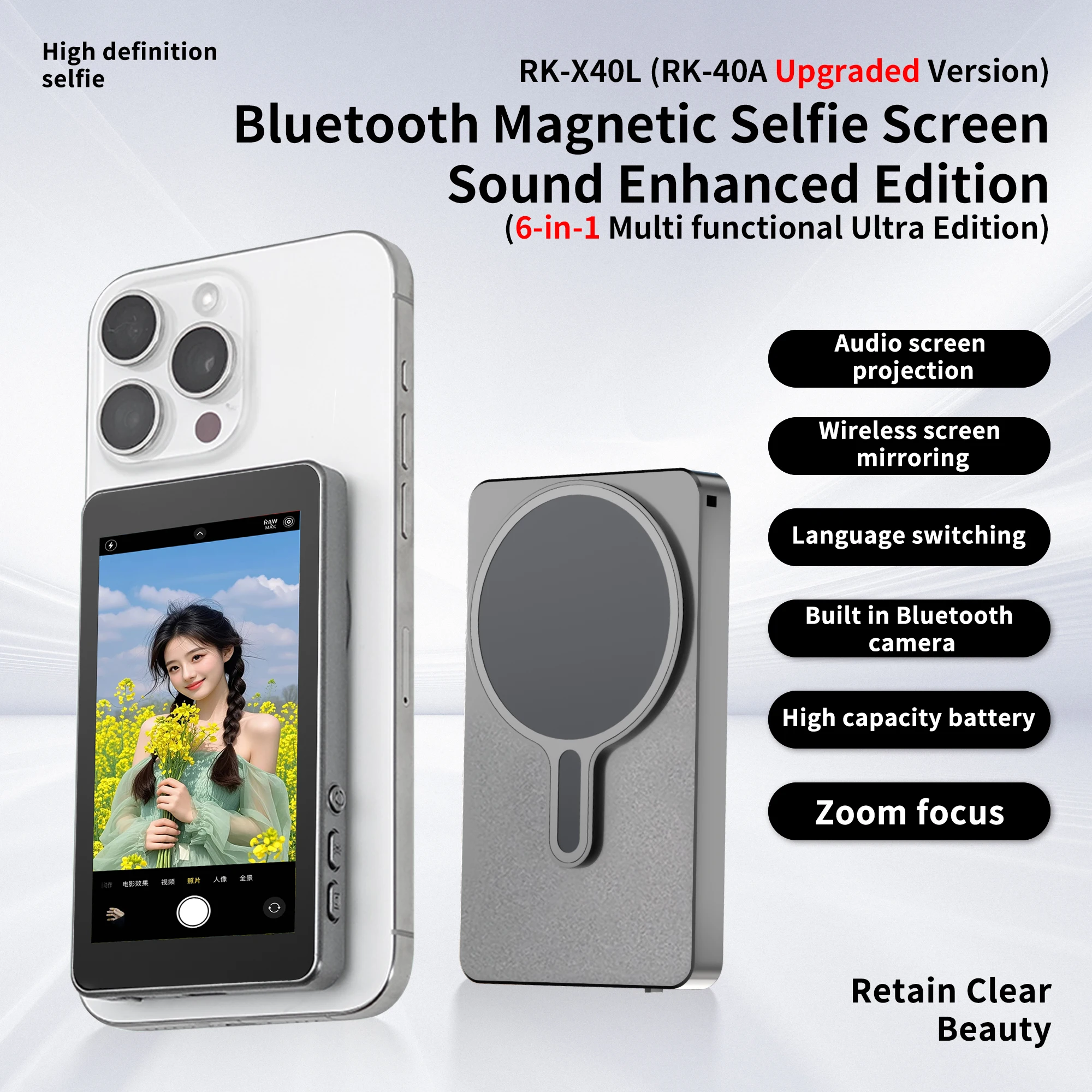 - ¡No más selfies ciegos!Observa claramente mientras utiliza la cámara trasera de alta resolución de tu teléfono para obtener fotografías/vídeos con calidad de estudio.