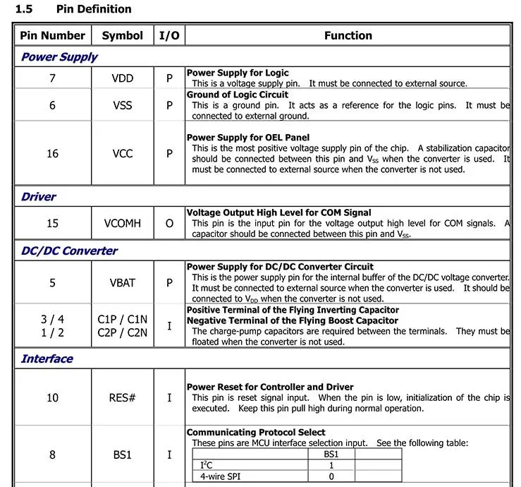 0,96 pulgadasParámetros del producto:Resolución: 128*64Ángulo de visión ultra amplio: 160°Consumo de energía ultrabajo: 0,06 W en pantalla normalAmplio rango de fuente de alimentación: CC 3,3-5 VRango de temperatura de funcionamiento: -40~+85°CModo de comunicación: IIC, SPI de 3 hilos, SPI de 4 hilos, paralelo 68xx de 8 bits, paralelo 80xx de 8 bitsEl brillo y el contraste se pueden controlar mediante las instrucciones del programa.Vida útil: no menos de 16.000 horasChip controlador: SSD1306