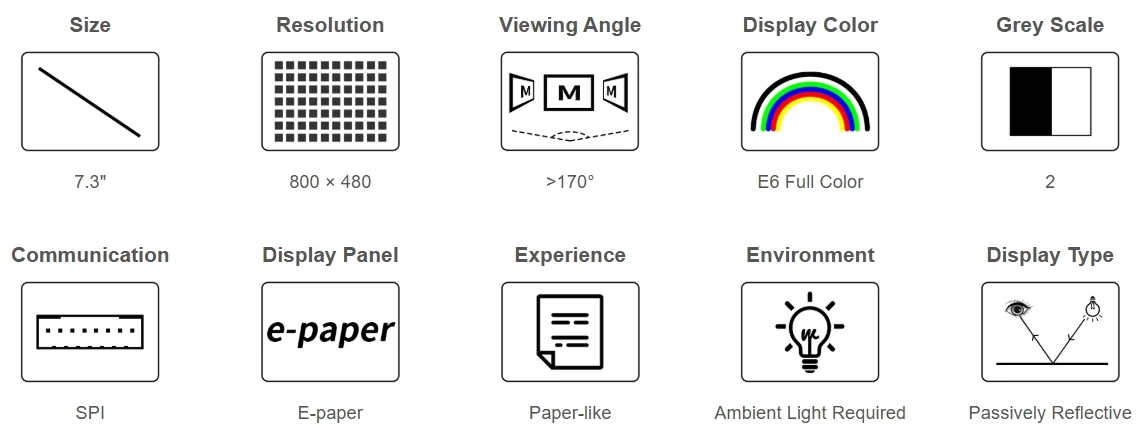 Comprar Pantalla de papel electrónico a todo color Spectra 6 (E6) de tinta electrónica de 7,3 pulgadas, pantalla de tinta electrónica, 800 × 480 píxeles, opcional para sombrero de conductor de papel electrónico
