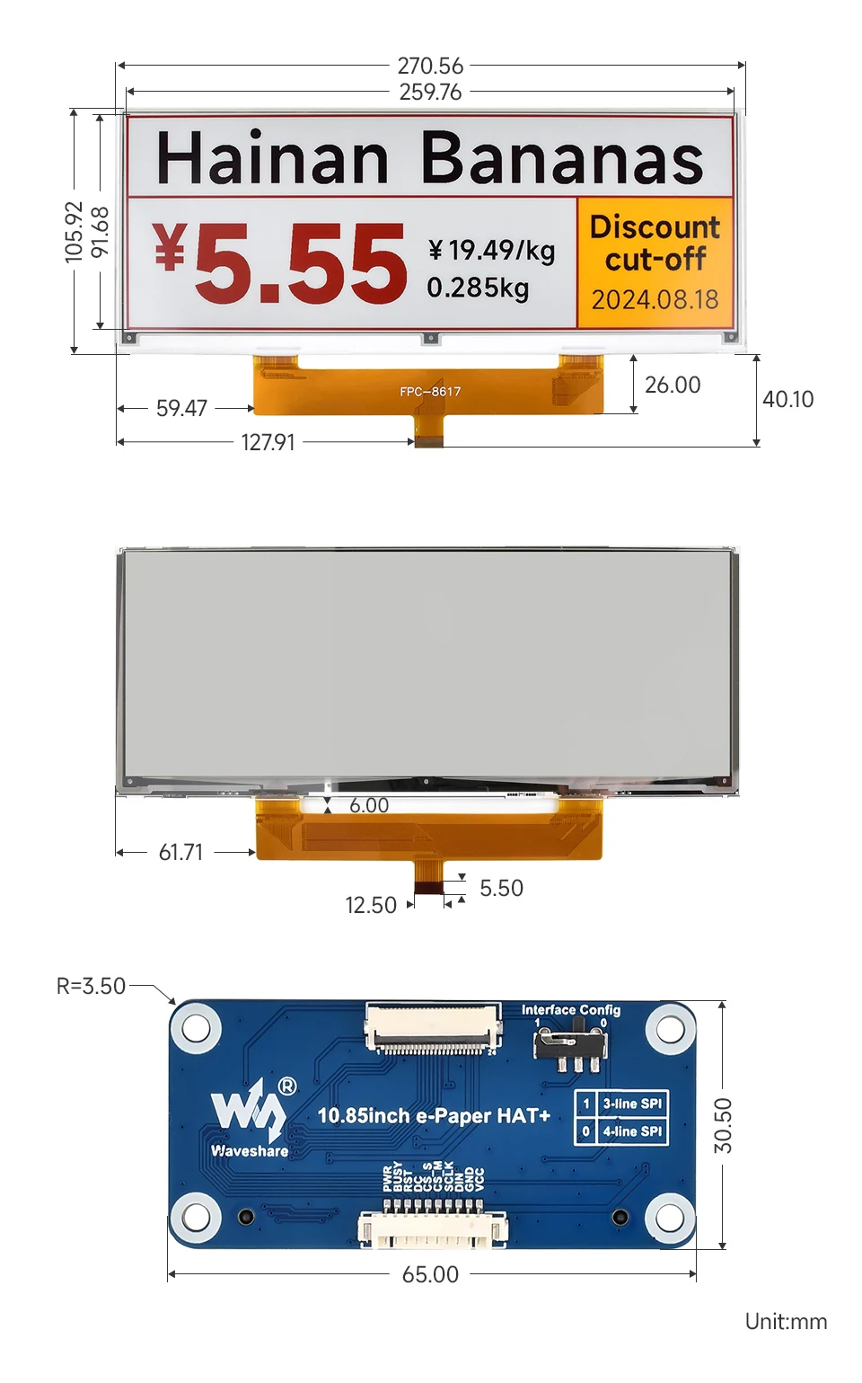 Pantalla sin rematar: 270.56 × 105,92 × 1,20 (mm)