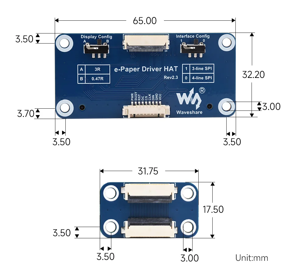 Interfaz SPI, para conectar con placas controladoras como Raspberry Pi/Jetson Nano/RDK X3/Arduino/STM32, etc.