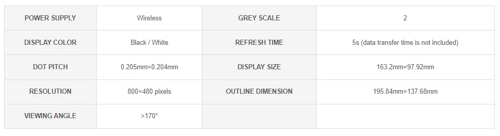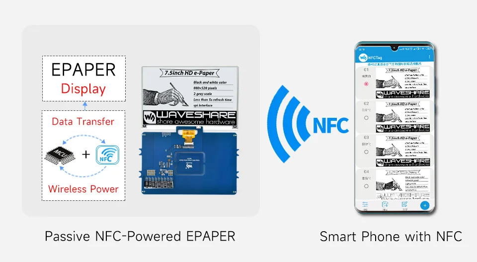 Este producto requiere una mayor potencia NFC para refrescarse debido a su gran tamaño, por lo tanto, es mejor utilizar la solución de placa NFC ST25R3911B.Kit de evaluación recomendado: Kit de evaluación de papel electrónico NFC de 7,5 pulgadas.
