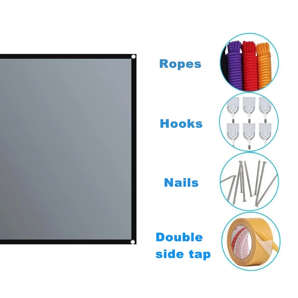 • Material reflectante :Fabricada con un material reflectante, esta pantalla de proyector reduce el brillo y mejora la visibilidad, proporcionando una experiencia de visualización óptima.