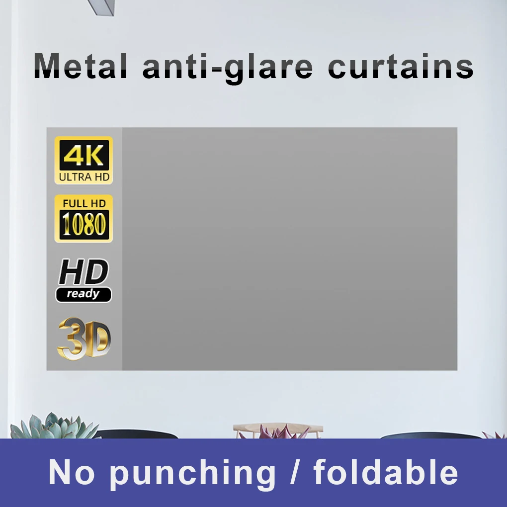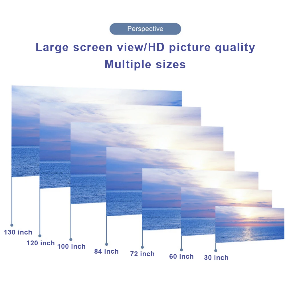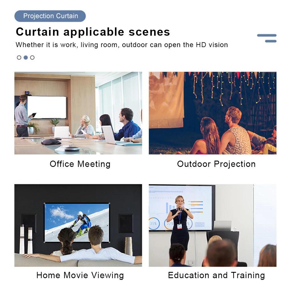 Portátil: La pantalla del proyector es plegable y ligera, que es portátil y fácil de llevar, buena para exteriores, viajes, camping, etc.