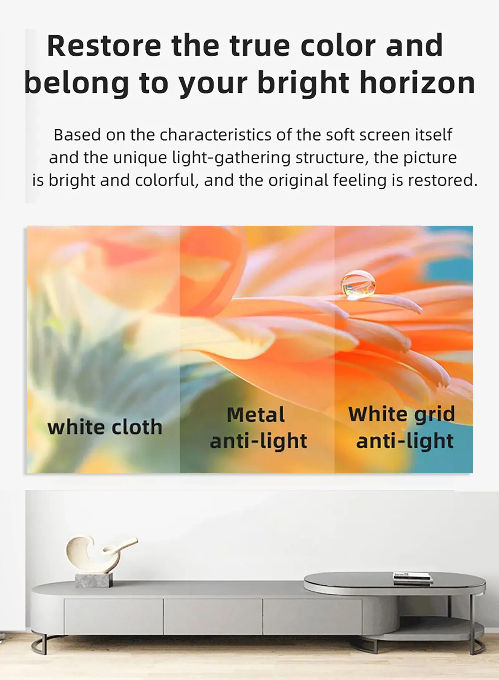 La pantalla está hecha de material de fibra de alta densidad, revestimiento a prueba de luz, sin olor, inofensivo para el cuerpo humano y la salud.Esta pantalla aumentará el brillo, se sentirá cómodo y le brindará una mejor experiencia visual.