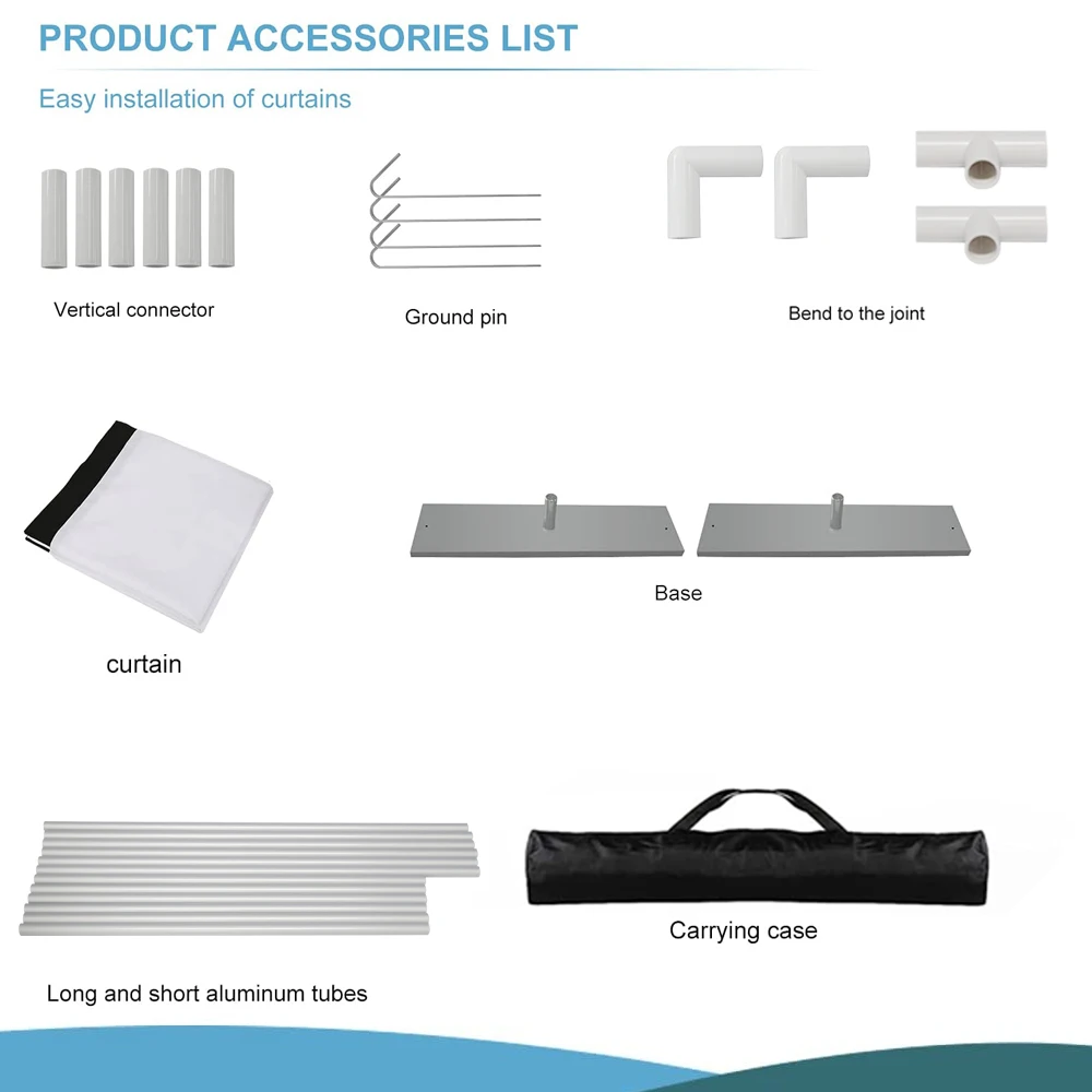 Es cómodo de llevar y empacar. Puede colocarlo en cualquier lugar, lo cual es una buena opción para viajar. También proporcionamos bolsas de transporte, clavos de tierra, que pueden hacer que la pantalla se mantenga estable.