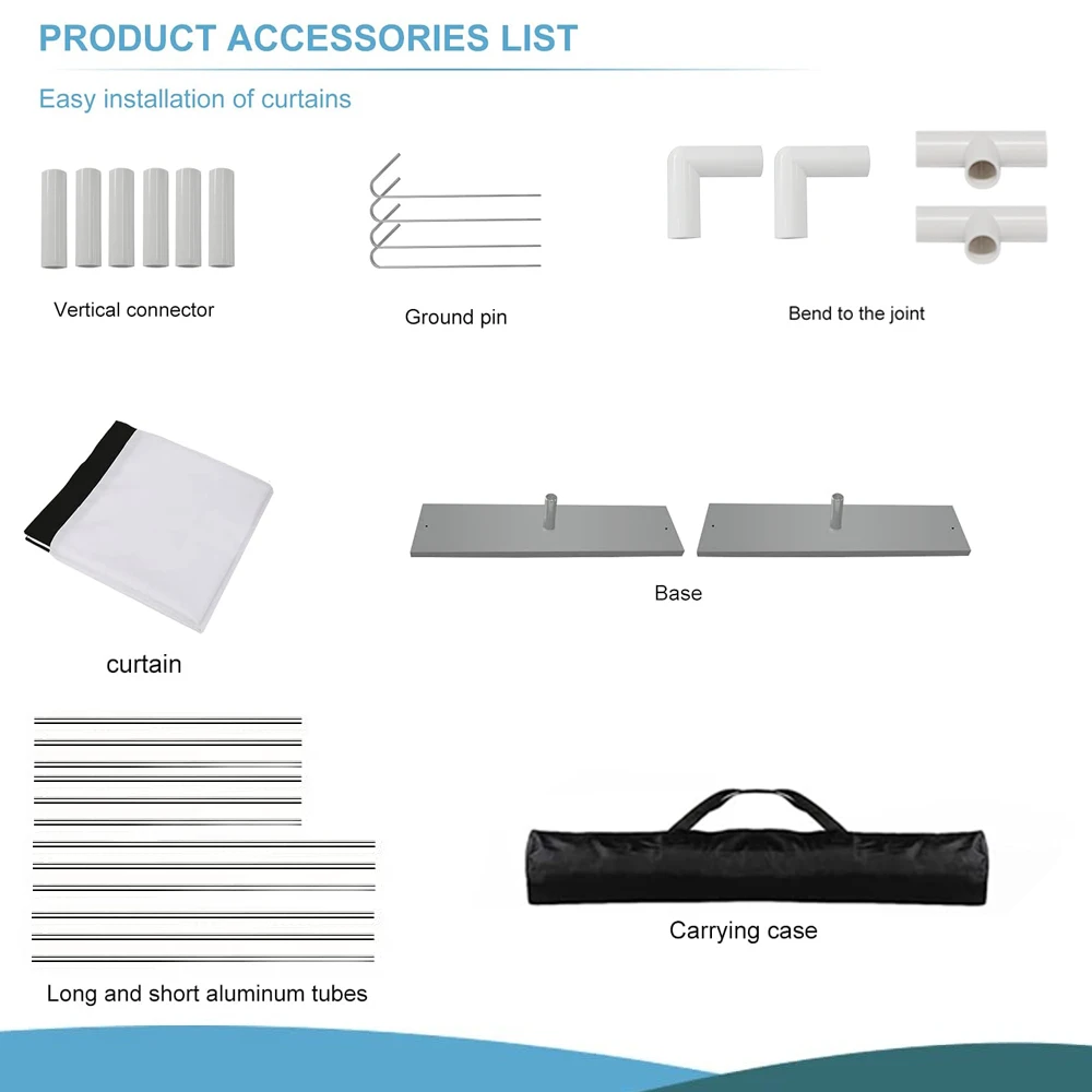 Es cómodo de llevar y empacar. Puede colocarlo en cualquier lugar, lo cual es una buena opción para viajar. También proporcionamos bolsas de transporte, clavos de tierra, que pueden hacer que la pantalla se mantenga estable.