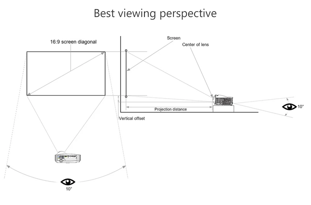 Note:The projector and screen is linear, and the audience is in the front.Viewing Angle is about 30-40 Degree.