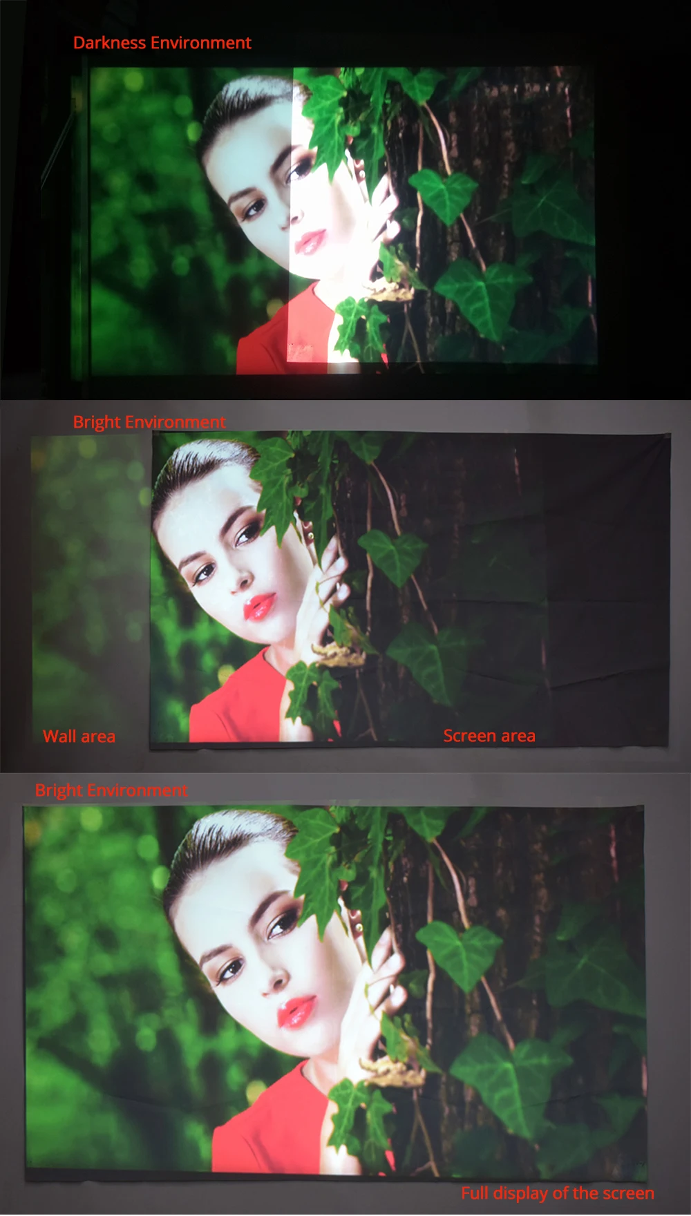This Screen adopts high density fiber material, no smell, no harm to human body and health. The metal layer and the bead particlesin this screen will increases the brightness.Give you better experience for watching.