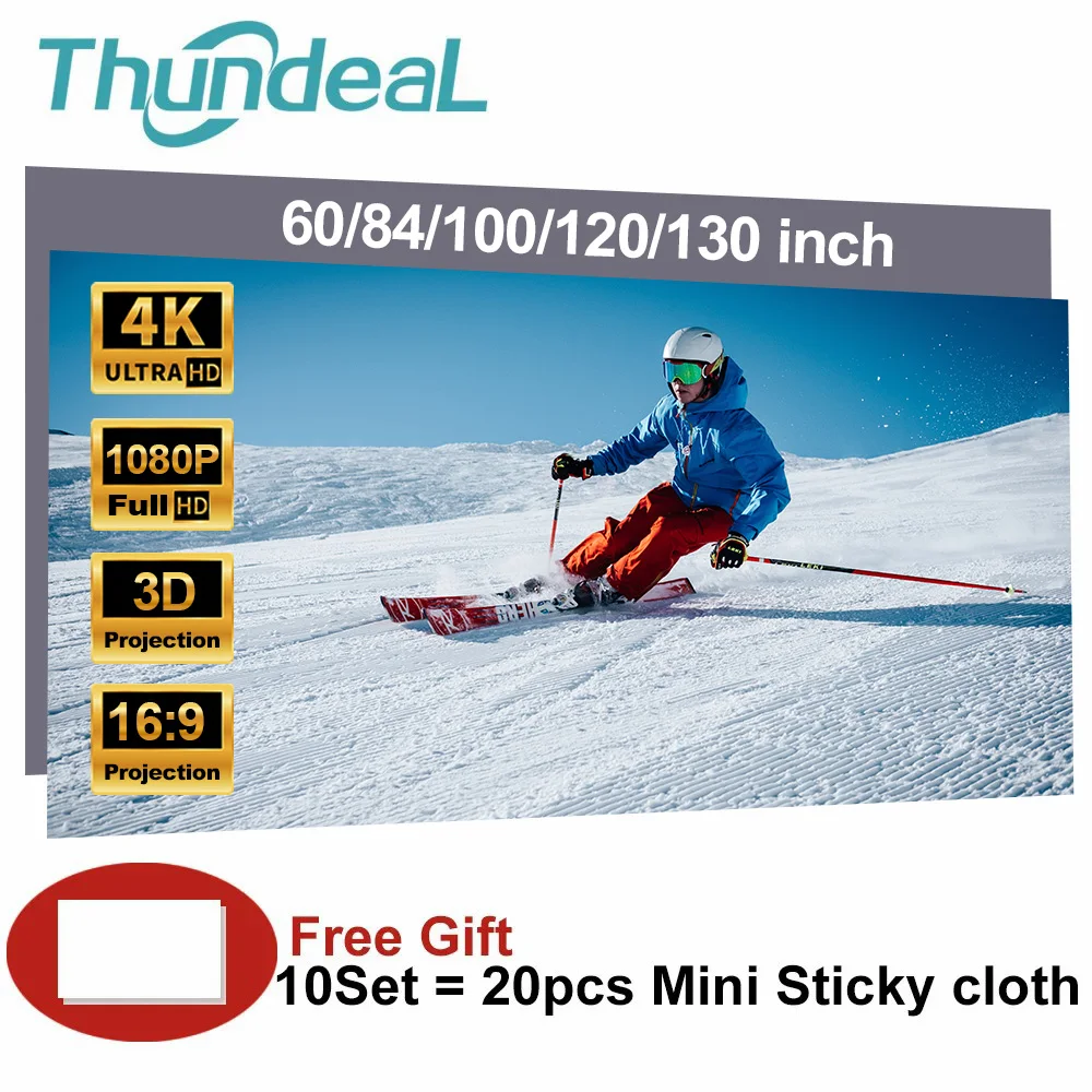 High Brightness Reflective Projector Screen 60 100 120 inch 16:9 Fabric Cloth Projector Screen for Espon BenQ XGIMI Home Beamer