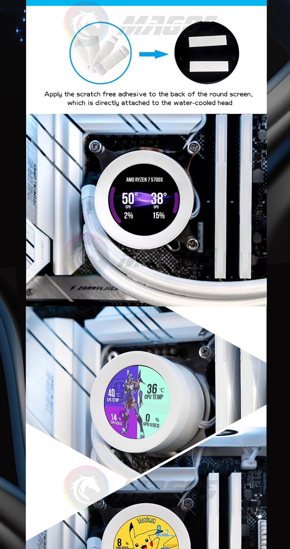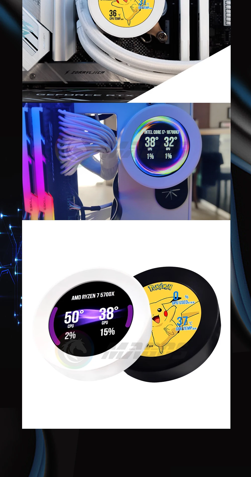 Comprar Pantalla redonda IPS de 2,1 pulgadas, pantalla dinámica, Control de temperatura AIDA 64 para CPU AIO 120/240/360, monitoreo en tiempo Real