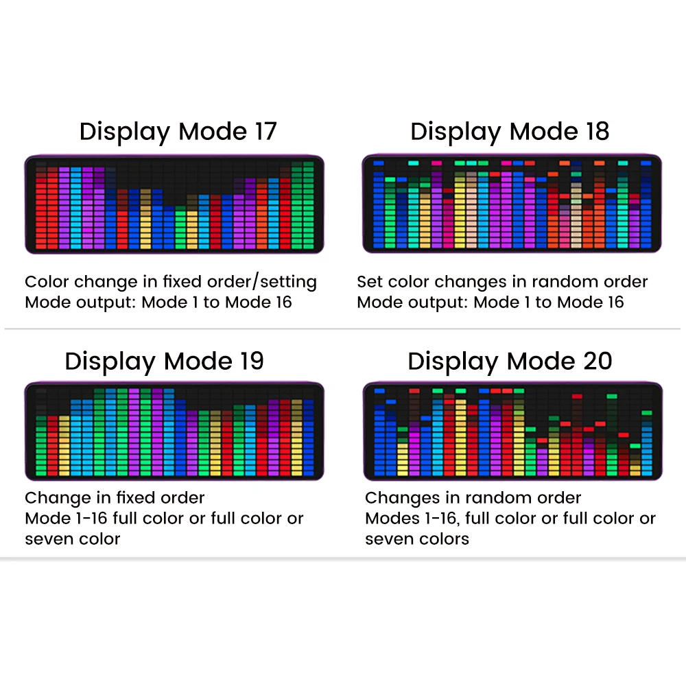 Modo de visualización: 16x24 en total 384 diodos emisores de luz RGB