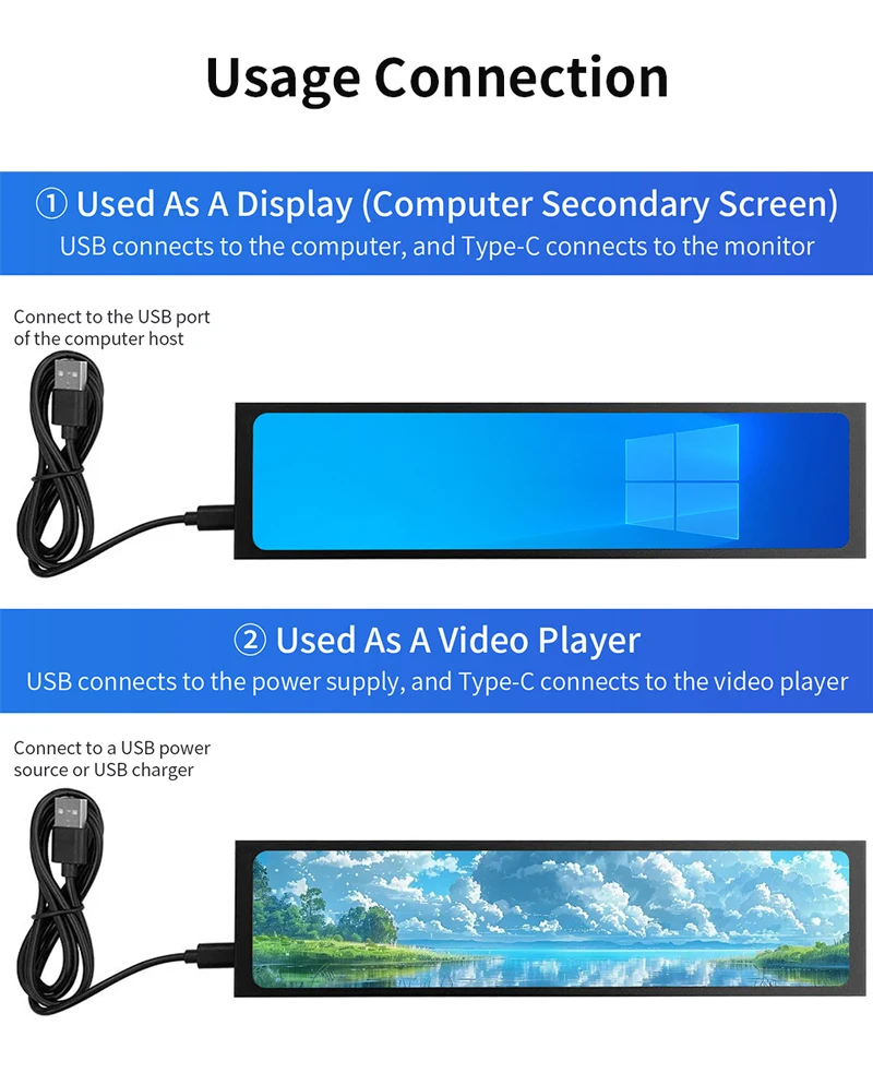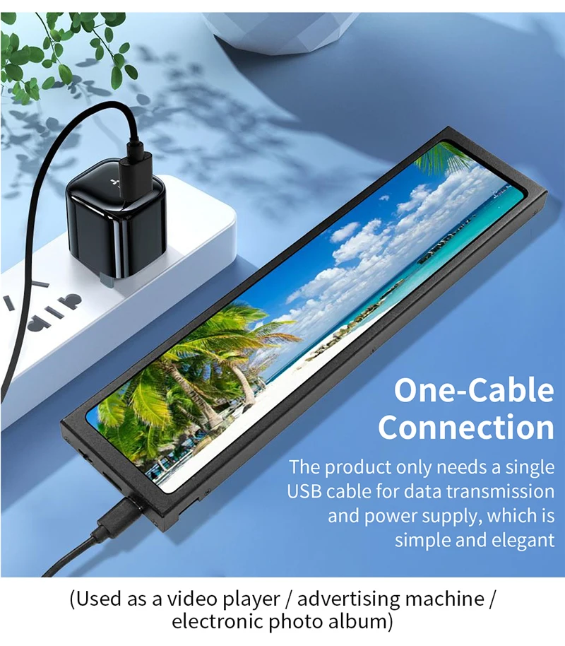 Pantalla secundaria de computadora tipo C IPS de 11,26 pulgadas 1920x440 LCD 170° Monitor de visión amplia reproductor de vídeo álbum de fotos electrónico
