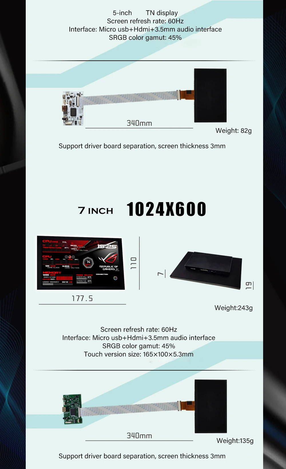 Comprar Pantalla secundaria dinámica de caja de ordenador, pantalla de Control de temperatura de PC, pantalla táctil de 5/7 pulgadas, papel tapiz en vivo Aida64