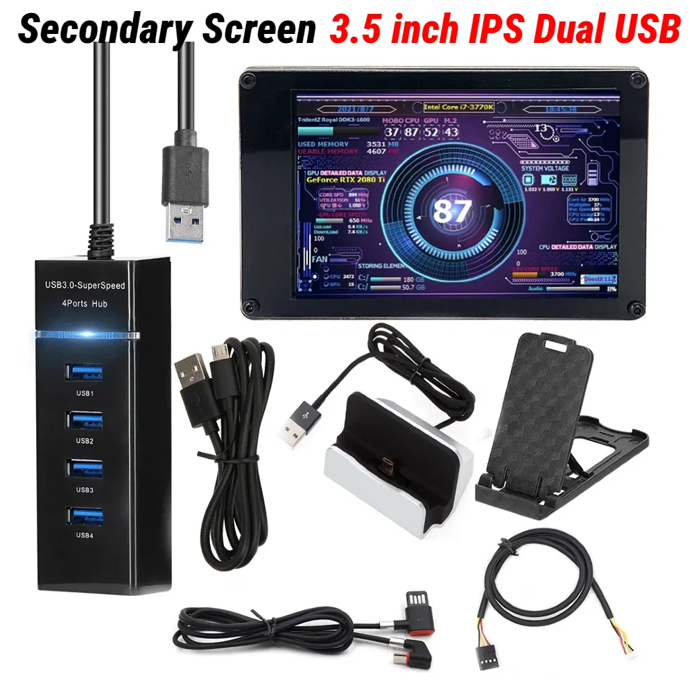 Pantalla secundaria de ordenador USB Dual de 3,5 pulgadas IPS DIY PC pantalla secundaria CPU GPU RAM HDD Monitor acrílico para Mini ITX Case AIDA64
