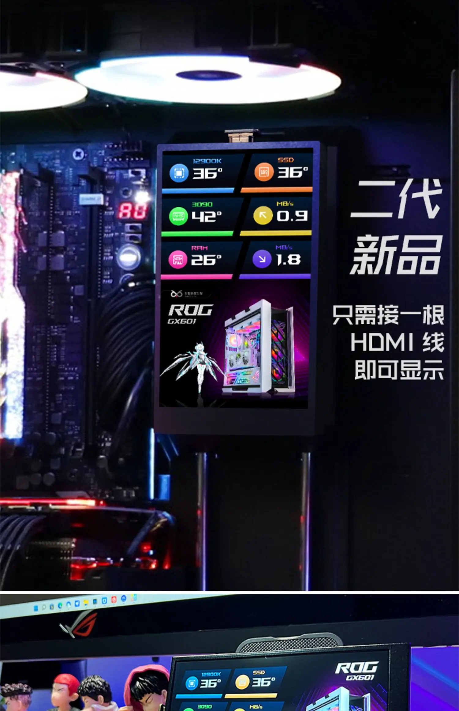 Solo un cable HDMI puede hacer que funcione, adecuado para su uso como pantalla secundaria de un ordenador para mostrar información de monitoreo de hardware, espectro de música, etc. También se puede utilizar como pantalla de visualización para placas de desarrollo como Raspberry Pi.