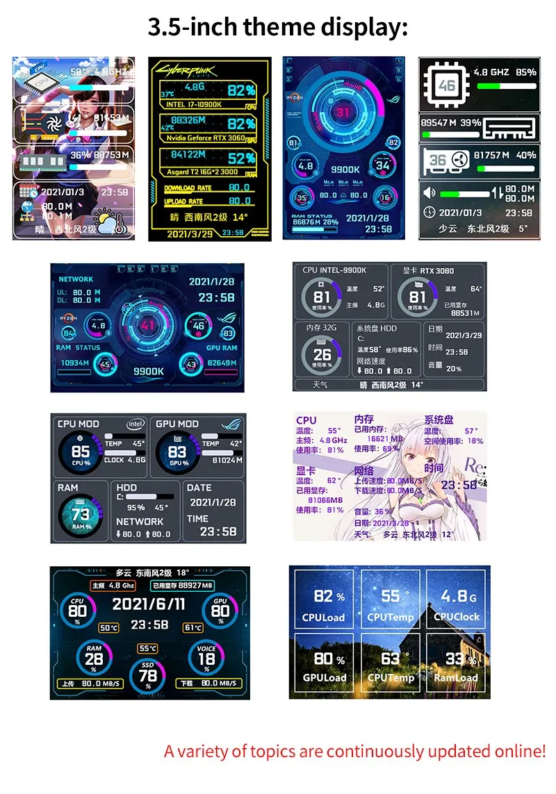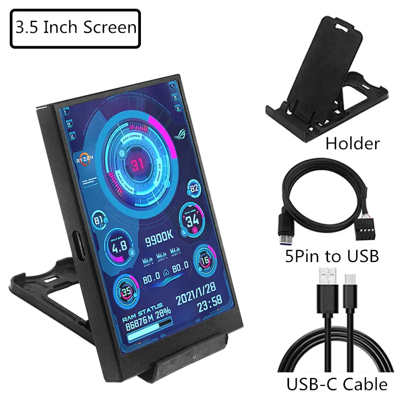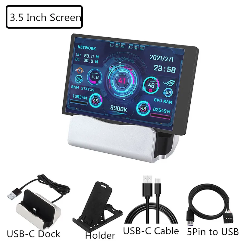 Pantalla secundaria IPS tipo C de 3,5 pulgadas, CPU, GPU, RAM, HDD, Monitor, pantalla USB, Mini Monitor AIDA64 Win 10 11