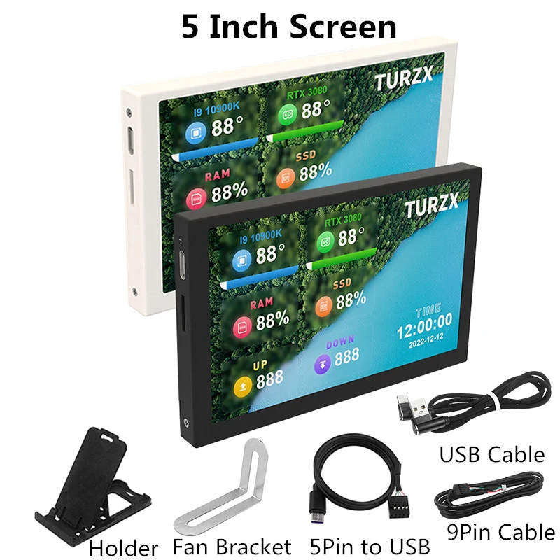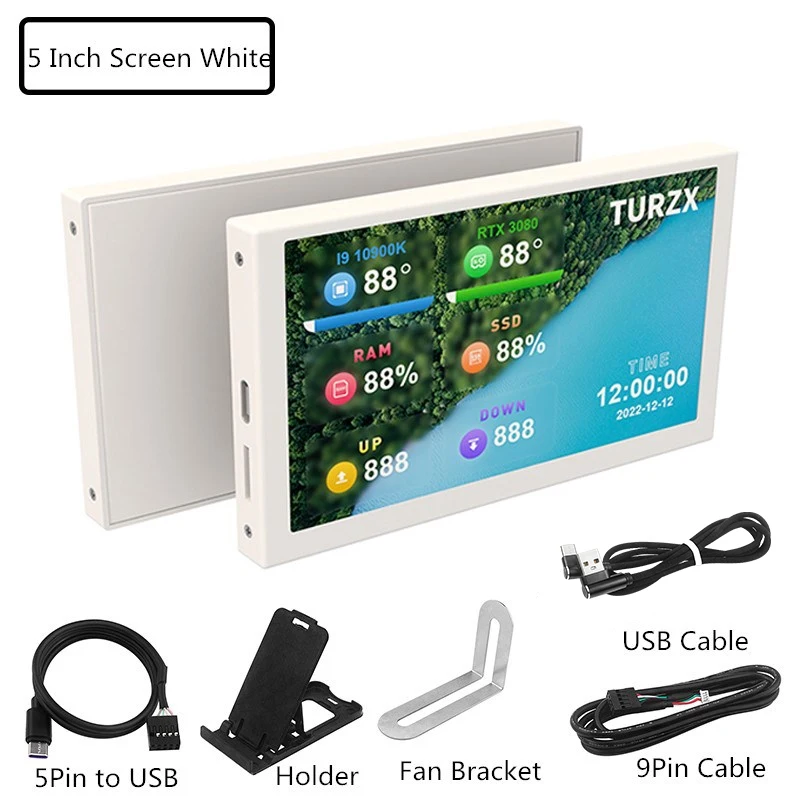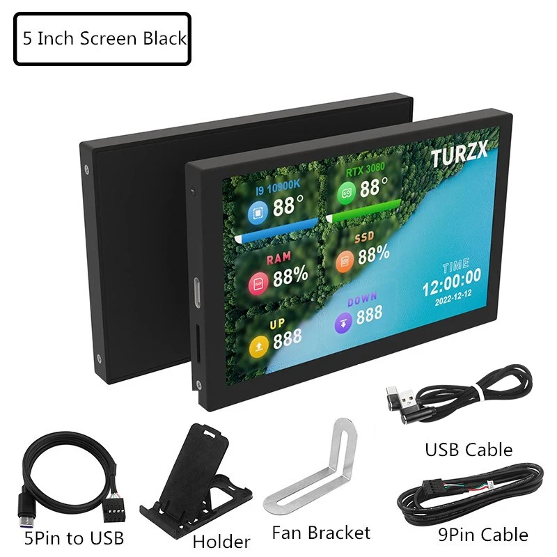 Pantalla secundaria IPS tipo C de 5 pulgadas, pantalla LCD para ordenador, USB Pantalla dinámica, soporte de subpantalla Vertical libremente AIDA64