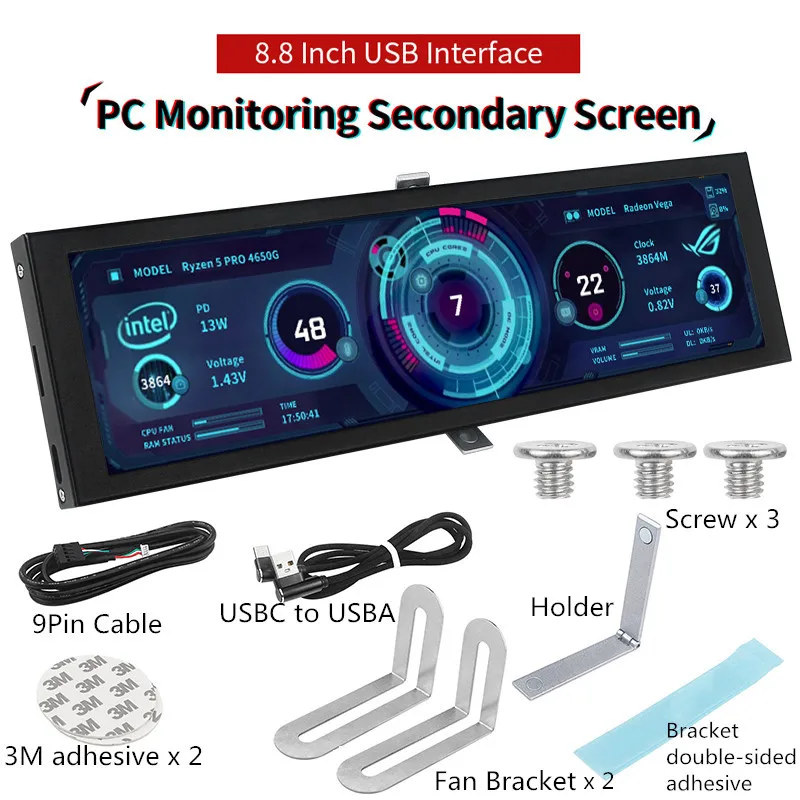 Comprar Pantalla secundaria IPS tipo C de 3,5/5/8,8 pulgadas, Mini ordenador, CPU, GPU, RAM, HDD, Monitor, USB, AIDA64