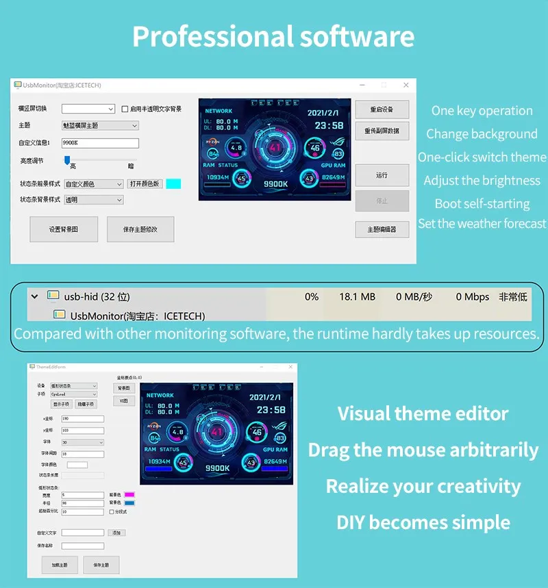 Conecte la mini pantalla secundaria al ordenador, luego inicie nuestro software personalizado, sin necesidad de aida64, sin otras configuraciones complicadas
