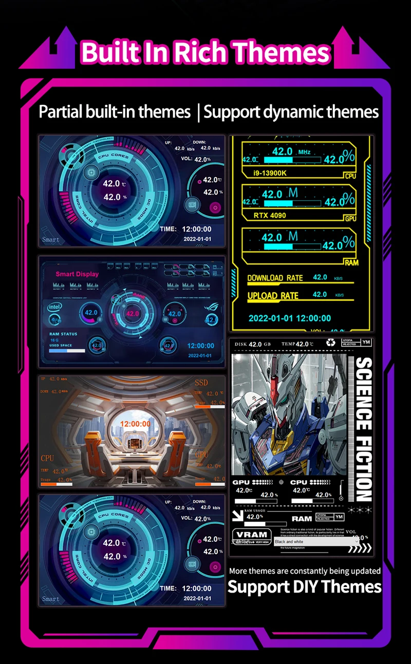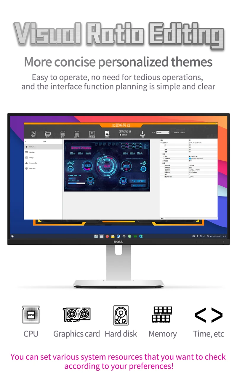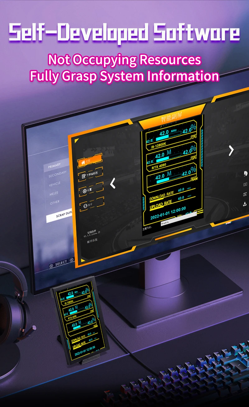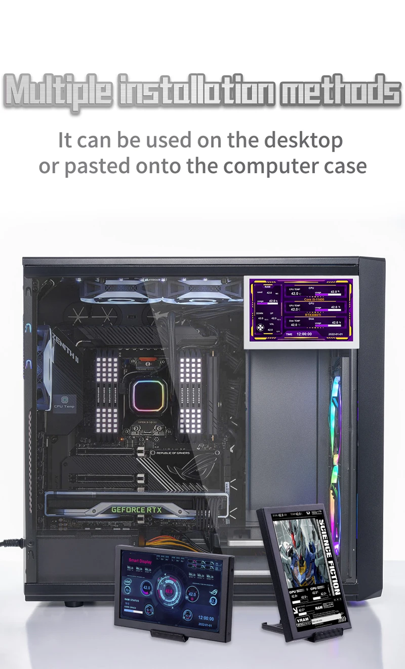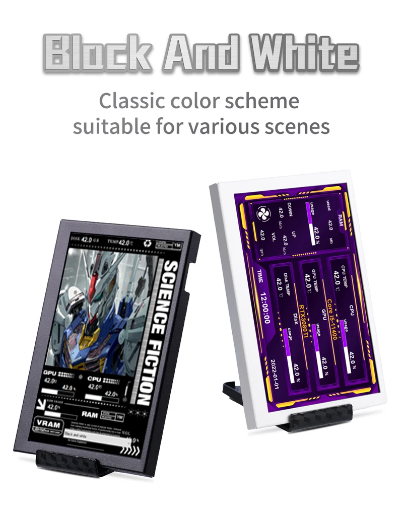 Pantalla secundaria IPS tipo C de 5 pulgadas Mini pantalla USB para PC 800x480 CPU LCD GPU RAM HDD Monitor de hardware de computadora inteligente Pantalla de análisis de espectro musical No necesita AIDA64