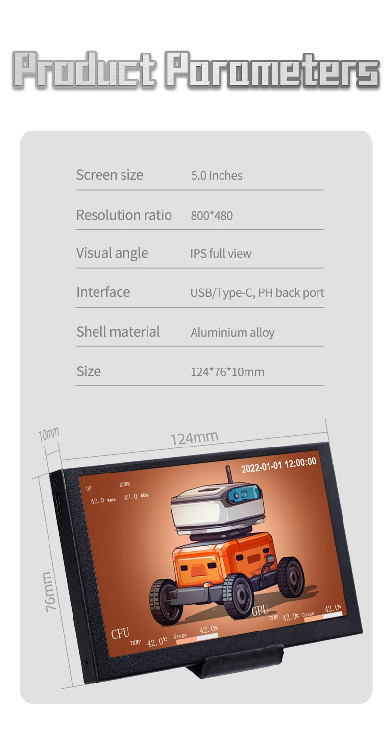Nombre del producto: pantalla secundaria IPS de 5 pulgadas