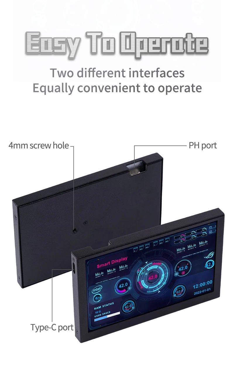 Pantalla secundaria TURZX IPS tipo C de 5 pulgadas