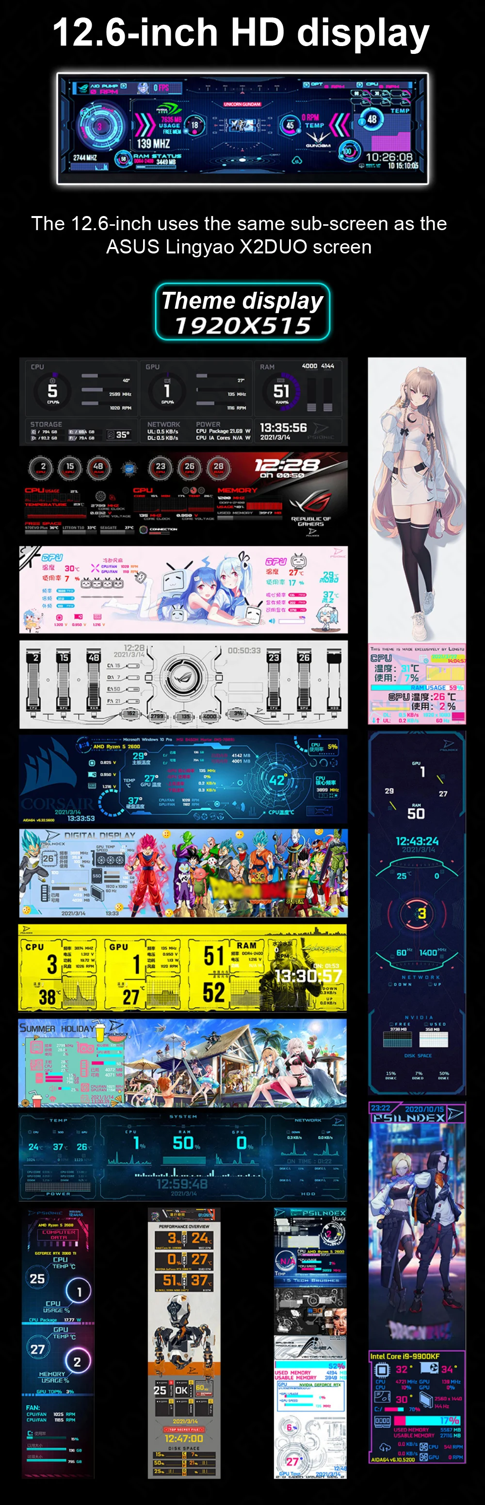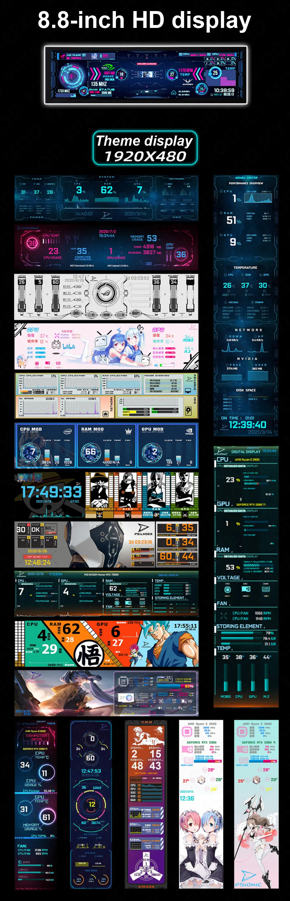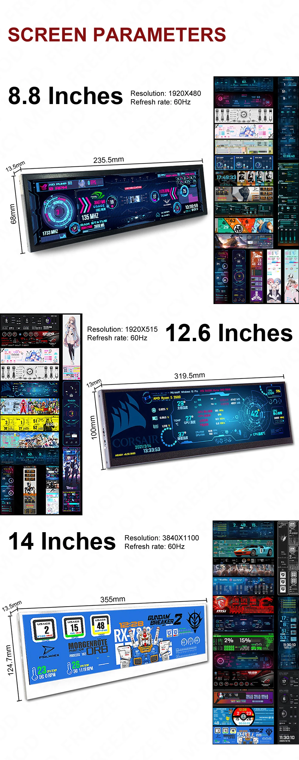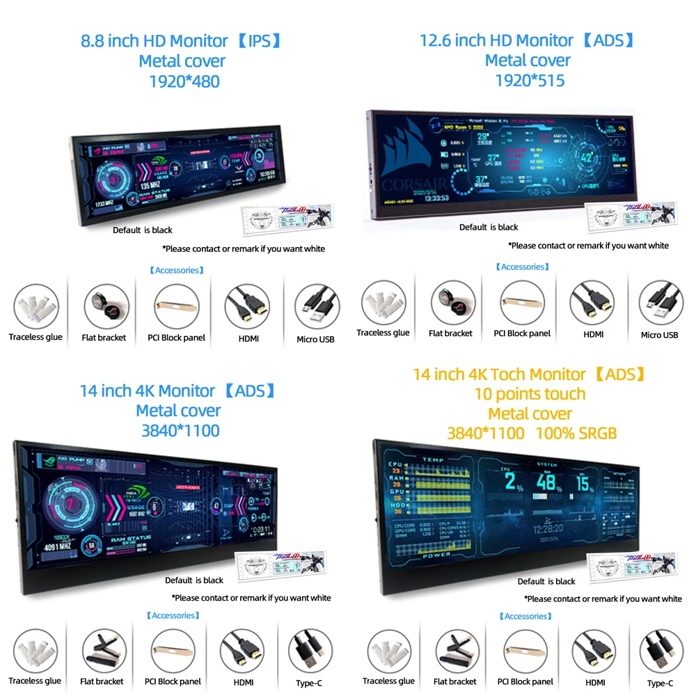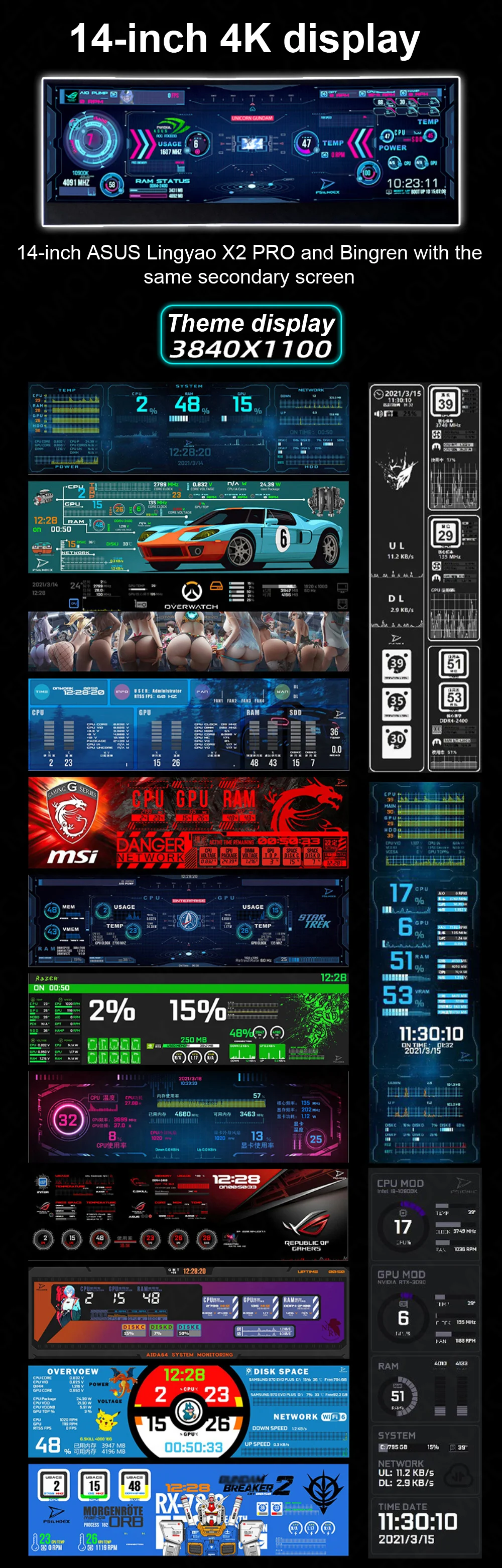 Comprar Pantalla secundaria de PC Aida64 de 8,8/12,6/14 pulgadas, pantalla LCD de doble extensión ASUS 4K, Monitor de datos DIY, pantalla HD de 3840x1100, MOD para jugadores