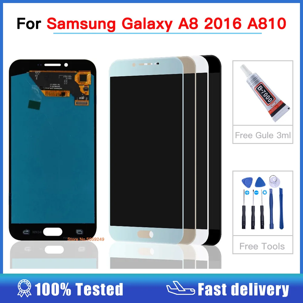 Pantalla Super Amoled para Samsung Galaxy A8 2016, pantalla LCD, montaje de digitalizador con pantalla táctil para Samsung A810 A810F/DS LCD probado