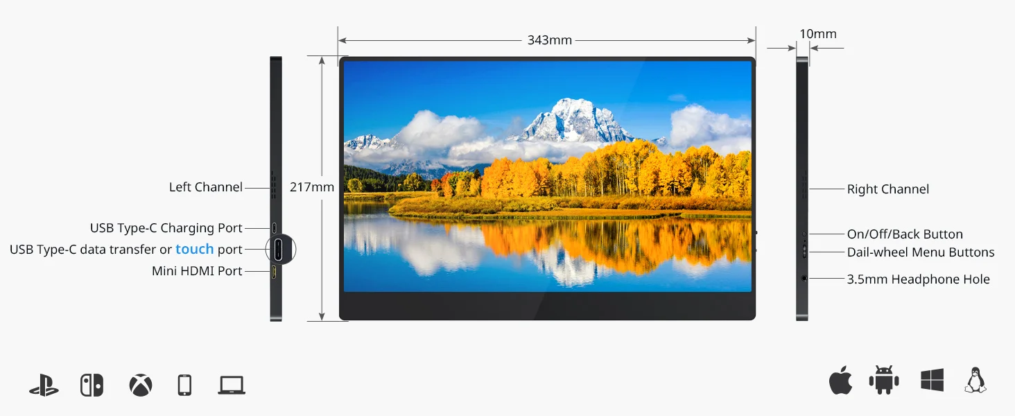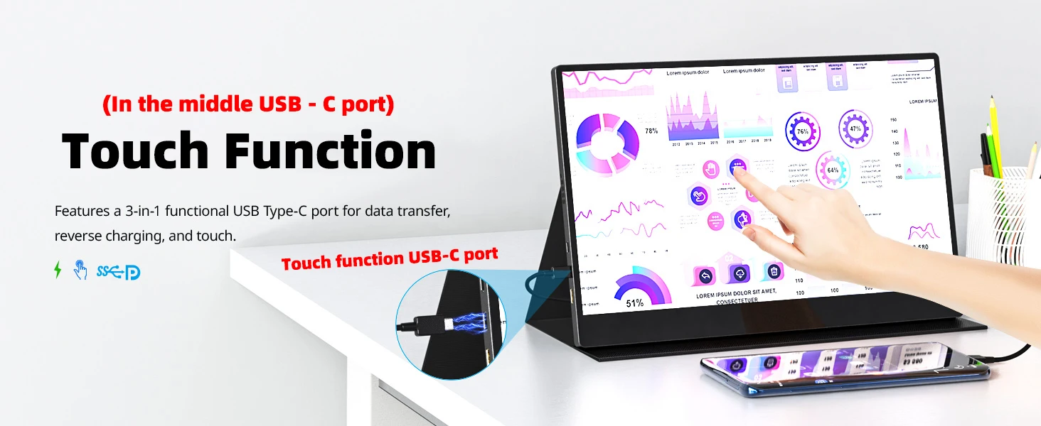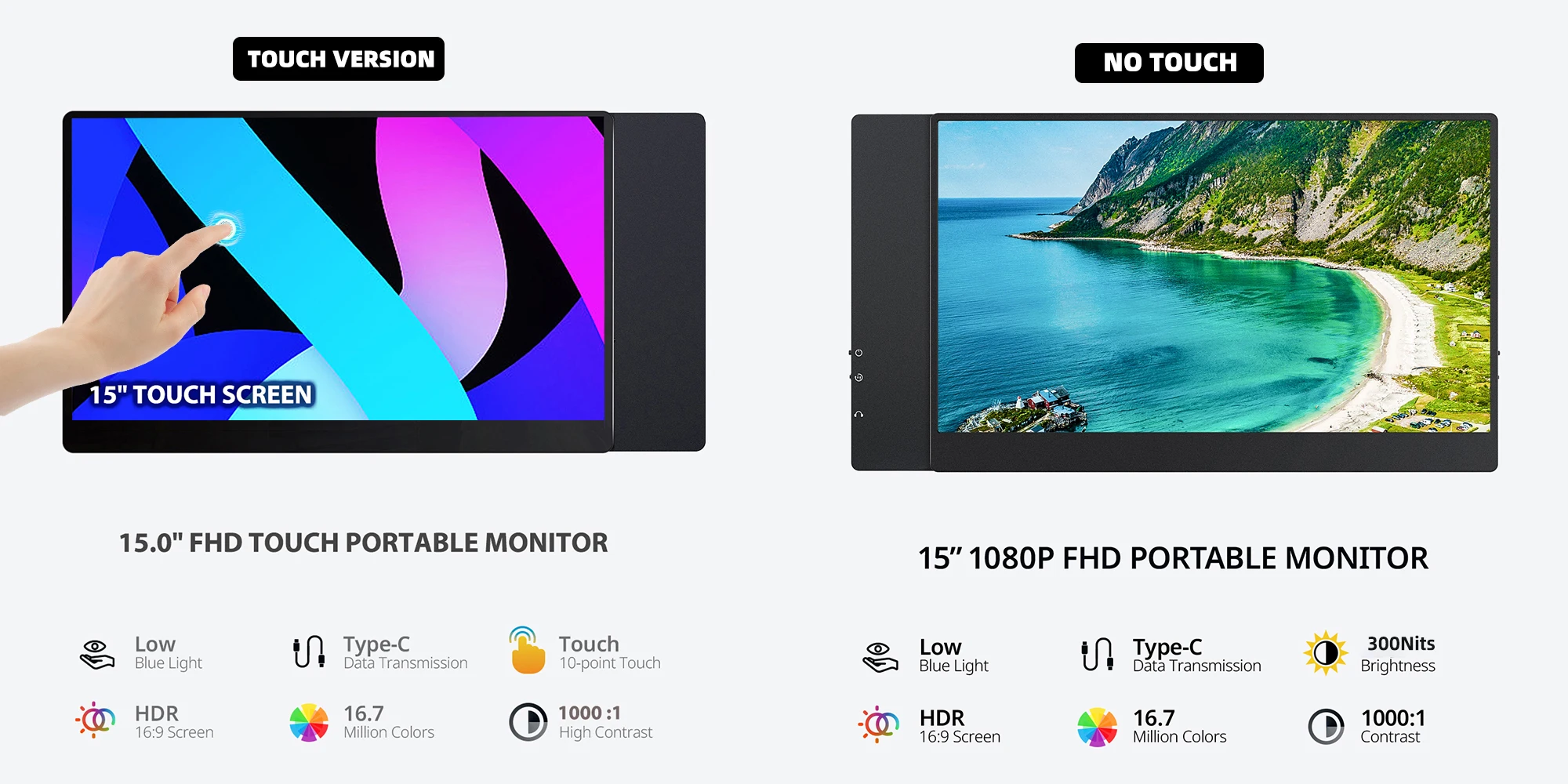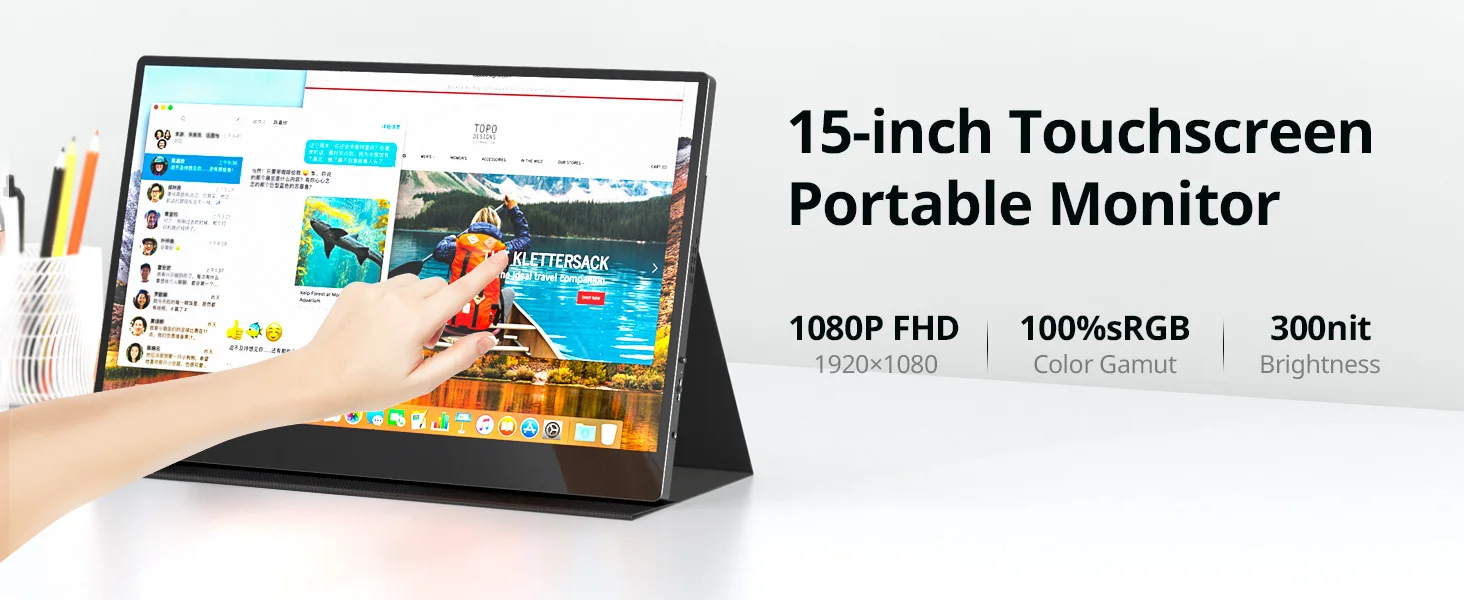 Comprar Pantalla táctil de 15 pulgadas, Monitor portátil Full HD para oficina, aleación de aluminio, segunda pantalla IPS externa para ordenador portátil, XBox, PS4/5, Switch, teléfono y PC