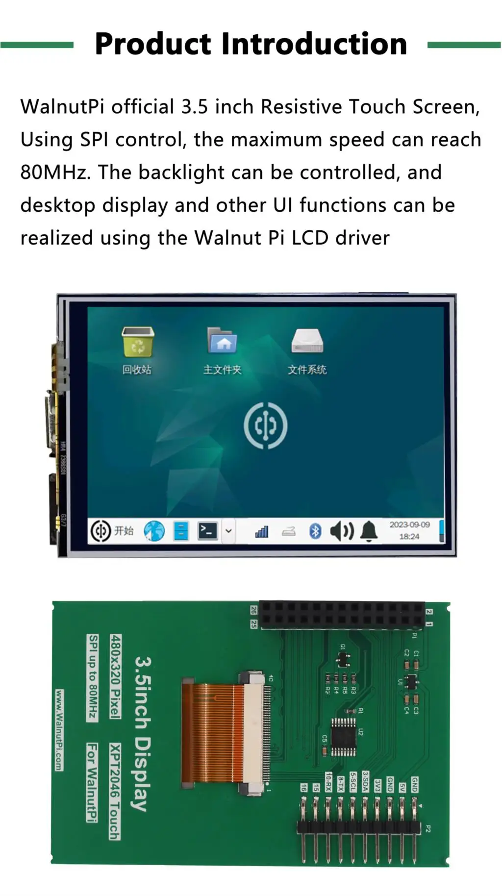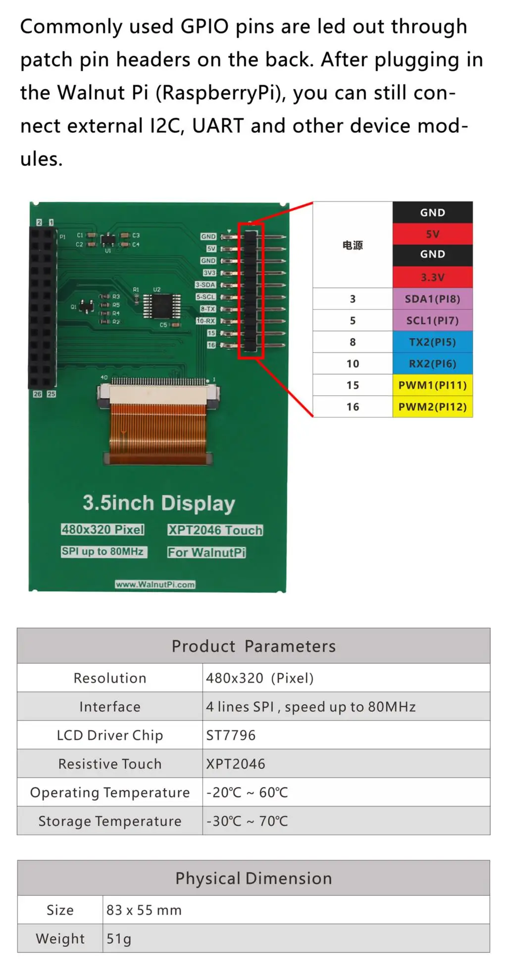 Pantalla táctil de 3,5 pulgadas para Raspberry Pi, módulo LCD de 480x320 TFT de 3,5 pulgadas, SPI de alta velocidad, 80MHz, WalnutPi