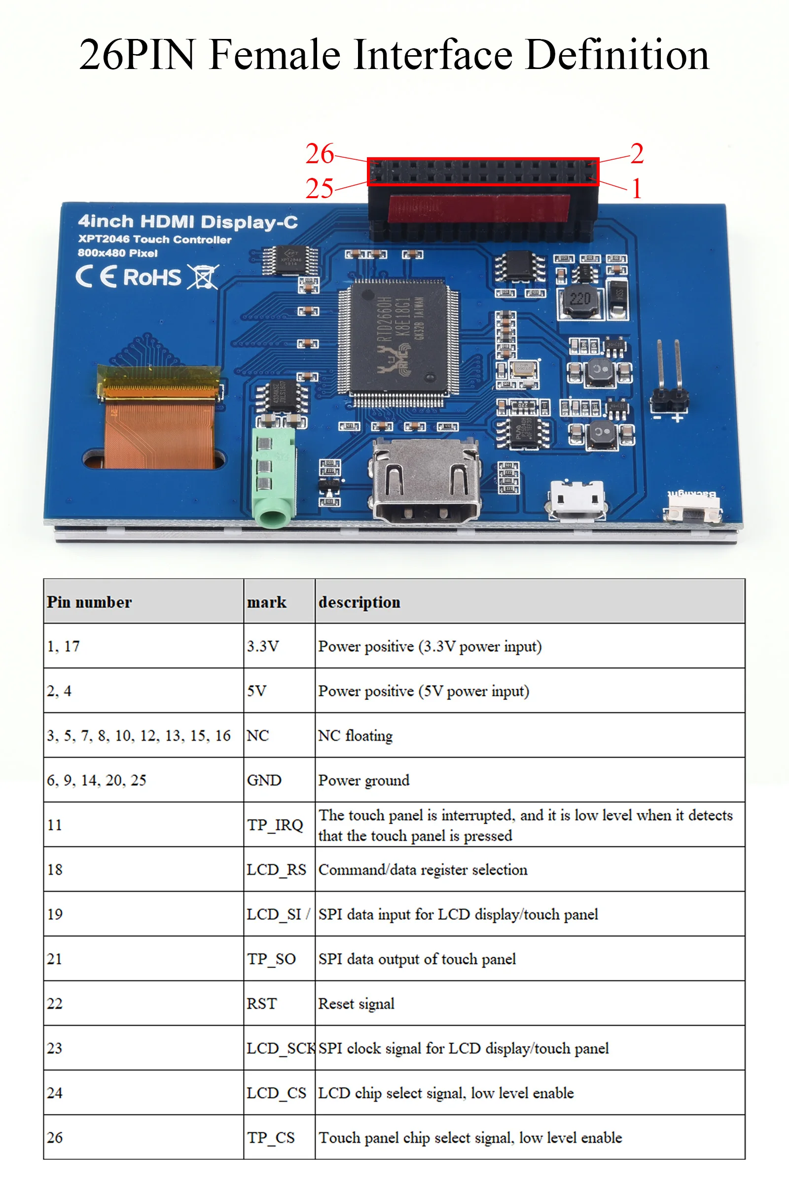 Pantalla táctil de 4 pulgadas 800*480 compatible con HDMI pantalla táctil TFT IPS LCD para Raspberry Pi 5/4B/3B+ /3B/Zore W