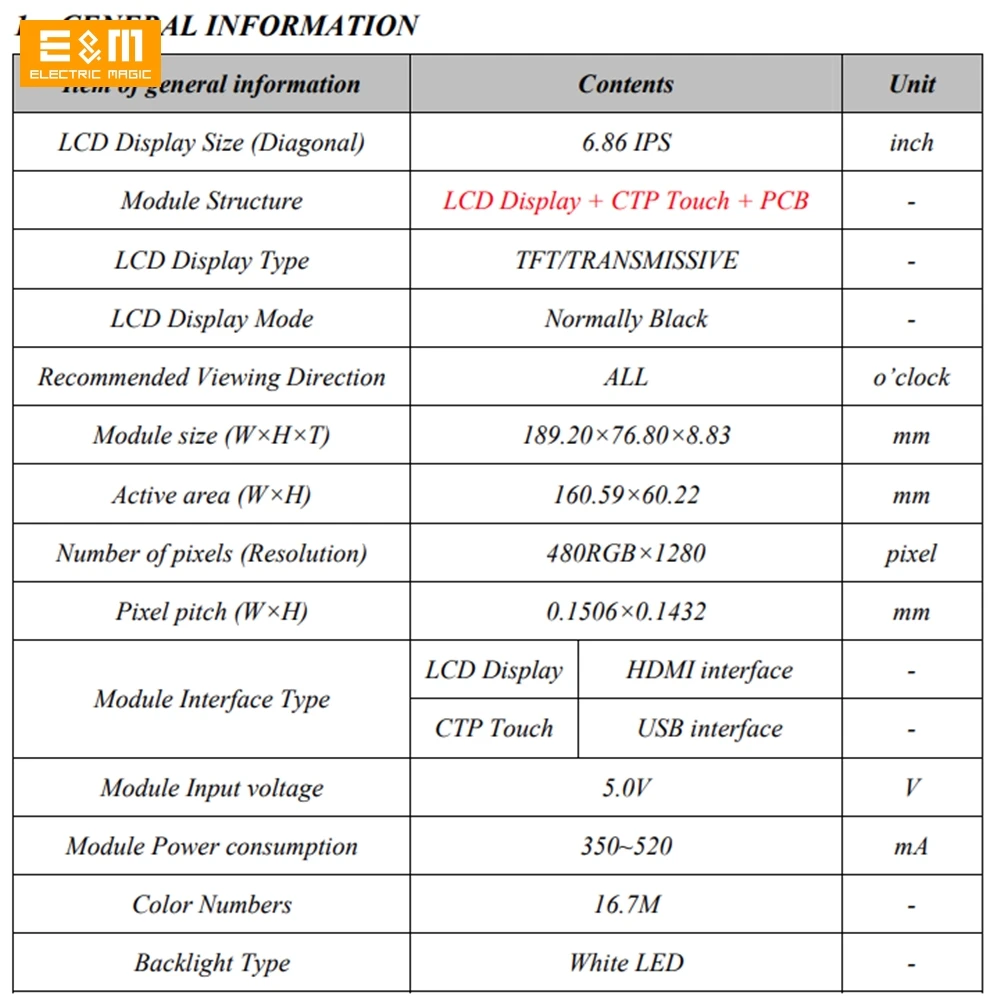 1 * Con pantalla táctil 1 * línea FPC 1 * Cable HDMI 1 * Cable USB
