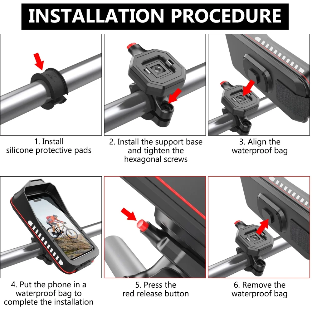 Pantalla táctil bicicleta Scooter manillar funda de teléfono bolsa impermeable bicicleta motocicleta MTB soporte de montaje para teléfono móvil liberación de bloqueo rápido