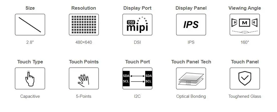 [] Pantalla táctil capacitiva de 2,8 pulgadas para Raspberry Pi, 480 × 640, DSI, IPS, pantalla de unión óptica