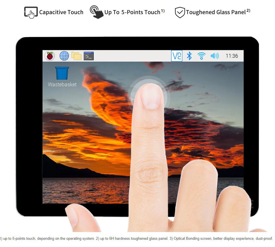 [] Pantalla táctil DSI de 2,8 pulgadas con control táctil capacitivo de 5 puntos.