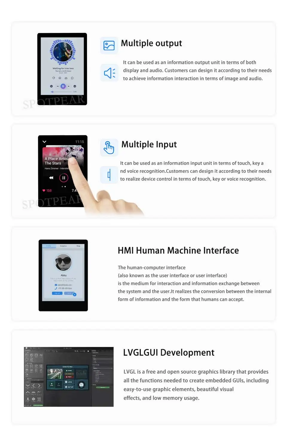 Pantalla de interfaz SPI, resolución de 240 × 320, múltiples interfaces periféricas