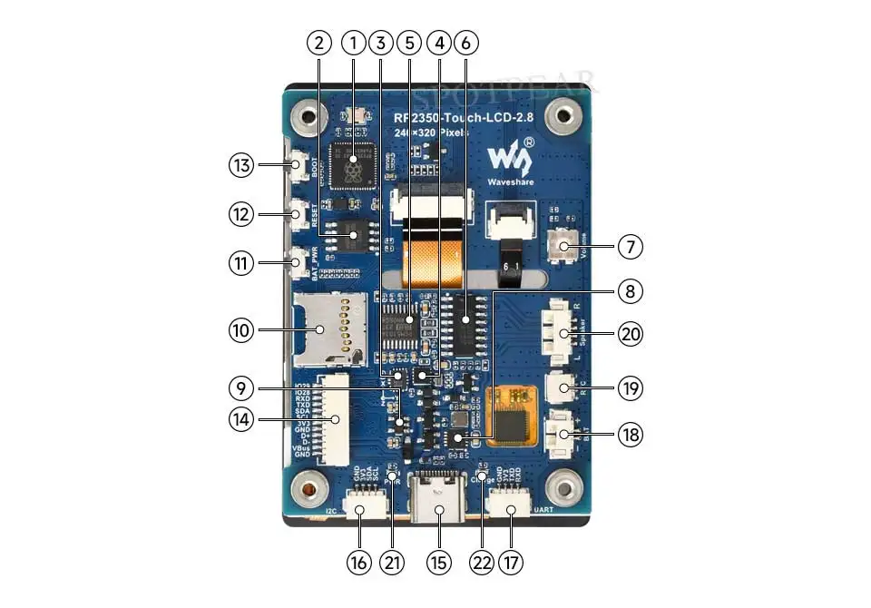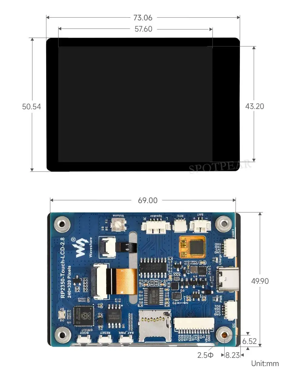 Placa de desarrollo de pantalla capacitiva RP2350 de 2,8 pulgadas