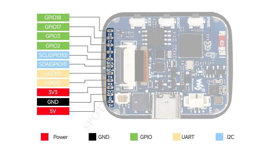 [] Se extraen cuatro almohadillas GPIO, y UART I2C, que se pueden usar para equipos externos y depuración, y se pueden configurar de manera flexible con funciones periféricas