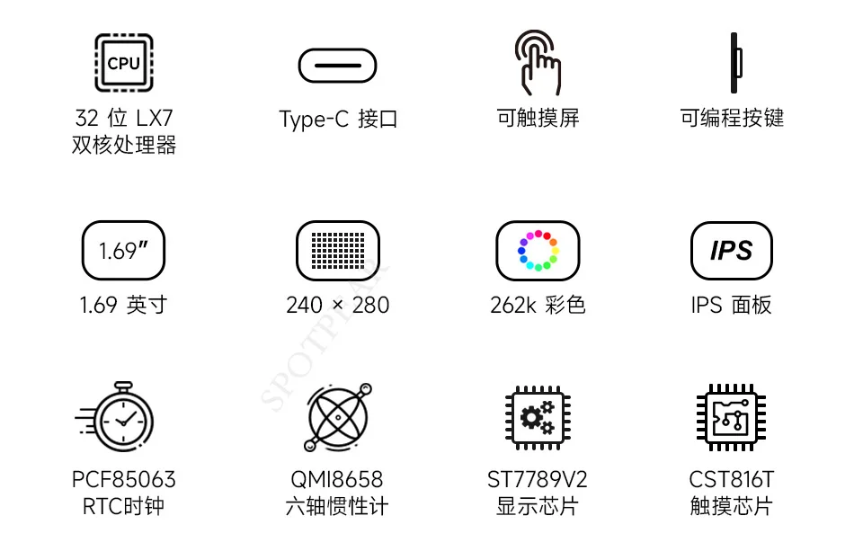 [] Chip de controlador ST7789V2 incorporado y chip táctil capacitivo CST816T, que utilizan respectivamente comunicación de interfaz SPI e I2C, no ocupan demasiados recursos de PIN de interfaz