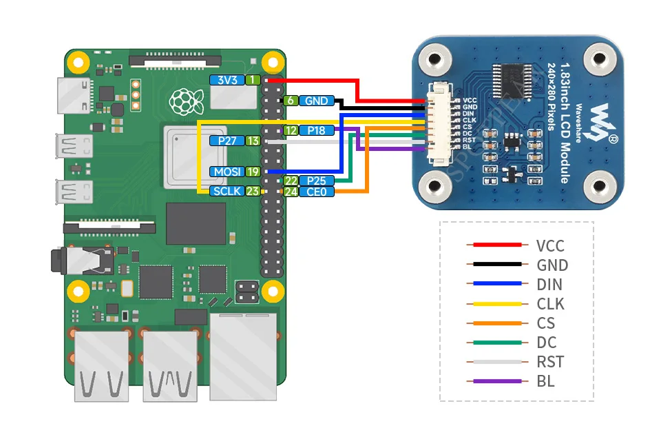 [] Interfaz SPI, minimiza los pines IO requeridos, admite placas controladoras como Raspberry Pi/Arduino/STM32/ESP32