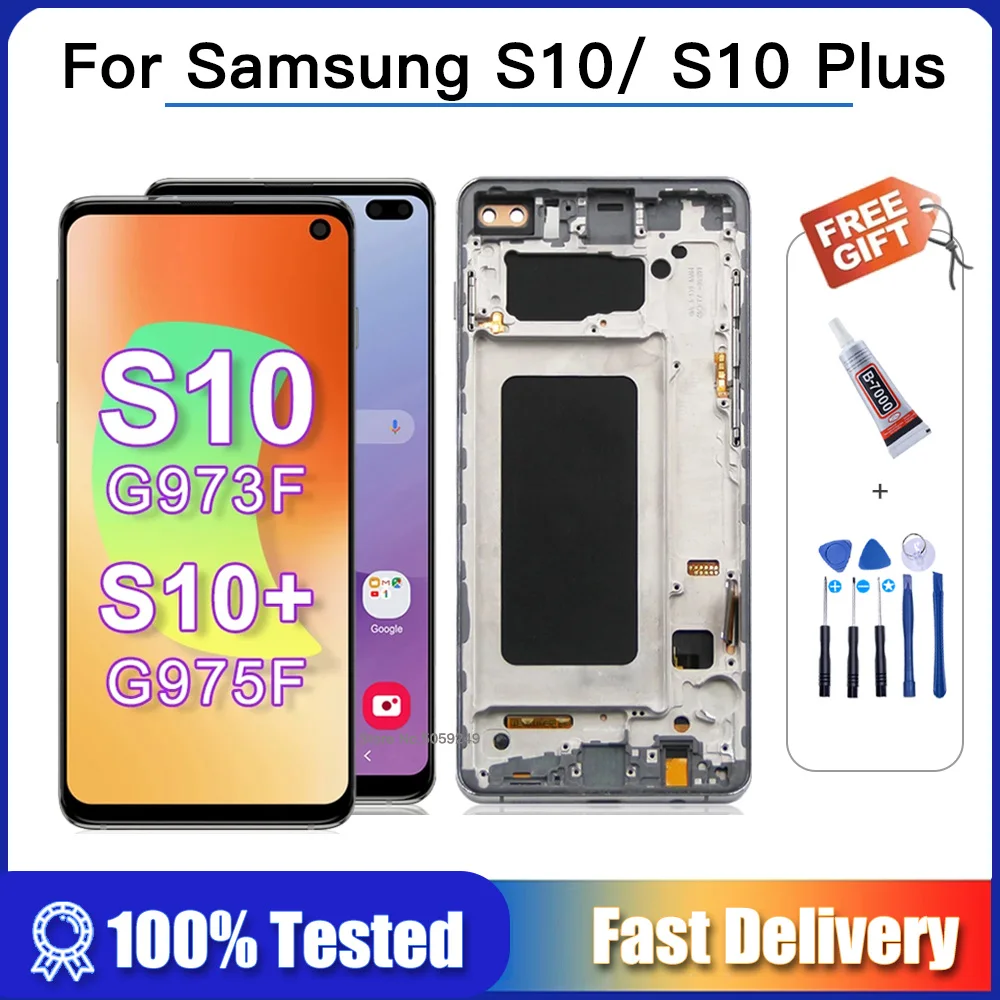 Para Samsung Galaxy S10 + /S10 Plus G975F/DS Pantalla Lcd Digitalizador de pantalla táctil para Samsung Galaxy S10 G973F/DS Pantalla con marco