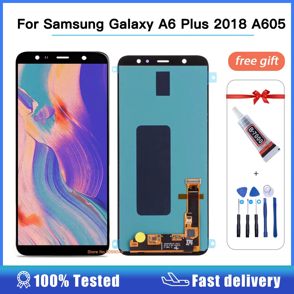 Super AMOLED para Samsung Galaxy A6 Plus 2018 LCD pantalla táctil digitalizador montaje para Samsung A6 Plus LCD A605 A605fd A6plus LCD