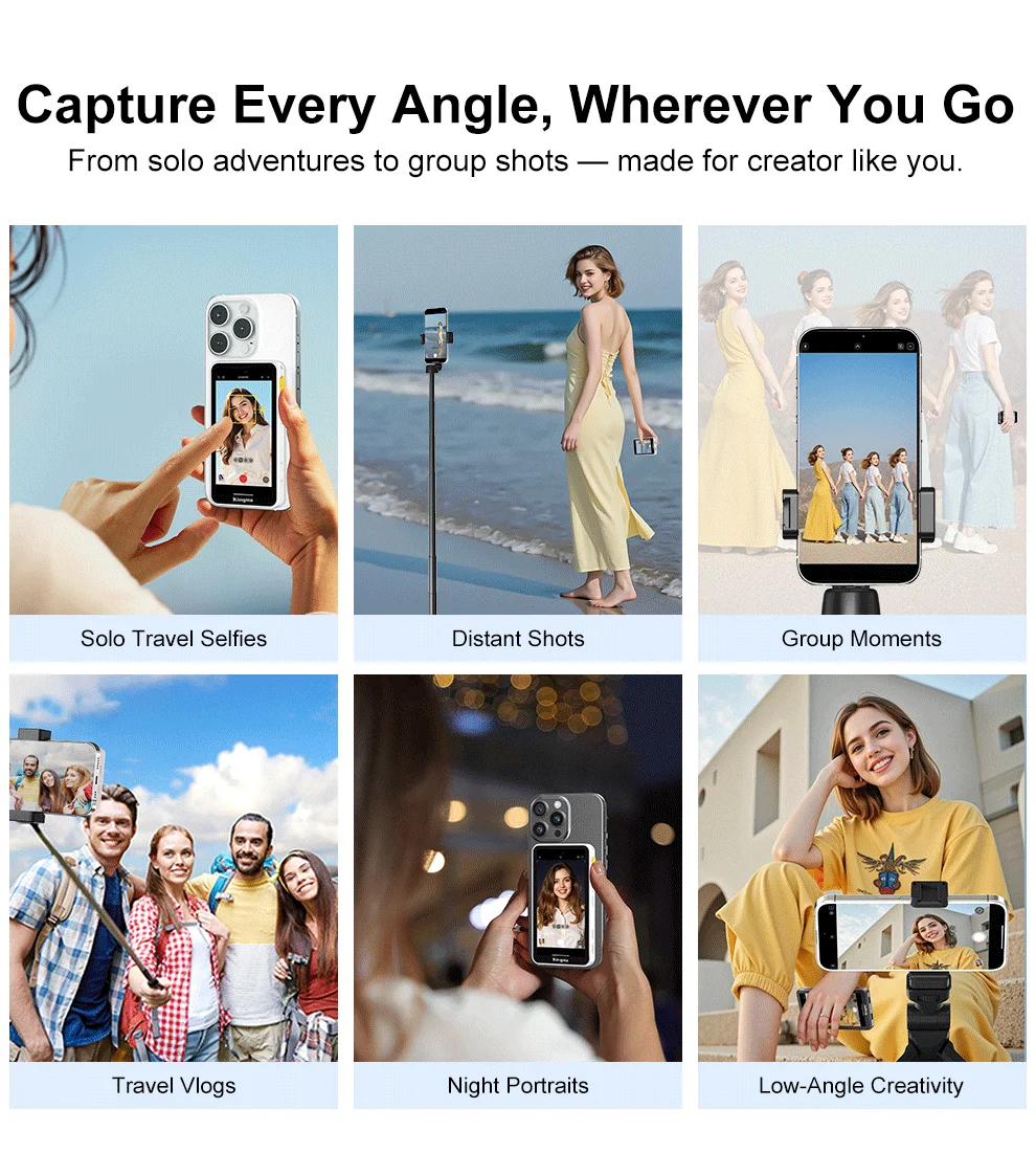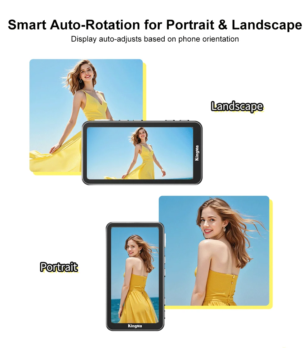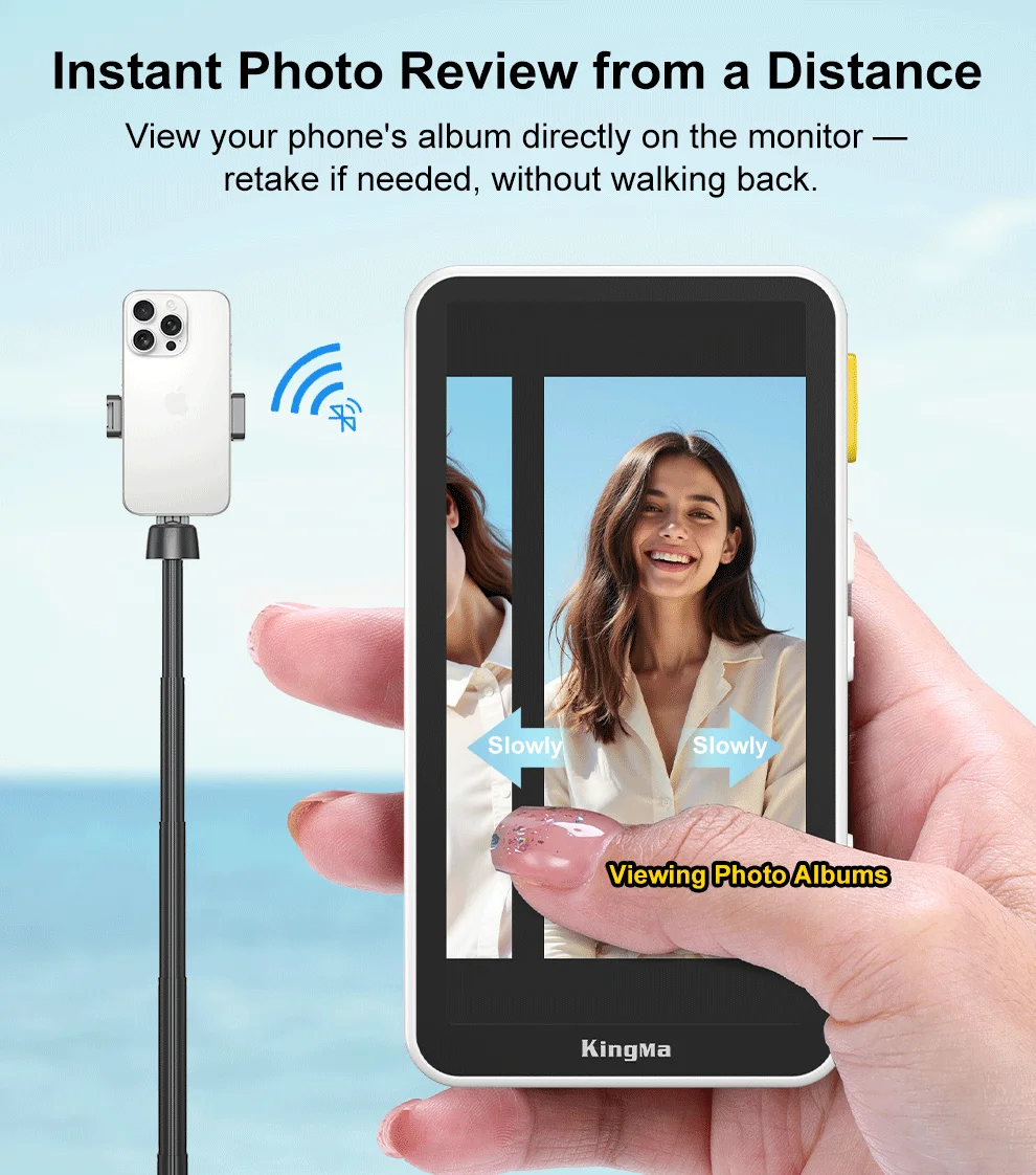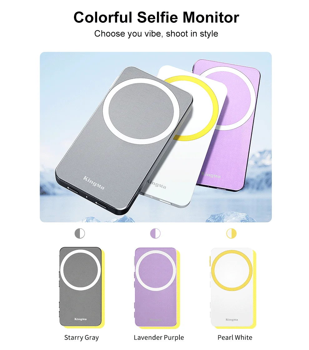 El monitor para selfies PH02 ULTRA encaja en el iPhone 12-16 a través de MagSafe para obtener una vista previa de borde a borde en tiempo real y un duplicación inalámbrica 4K/30 de baja latencia: use la cámara trasera para selfies más nítidos.