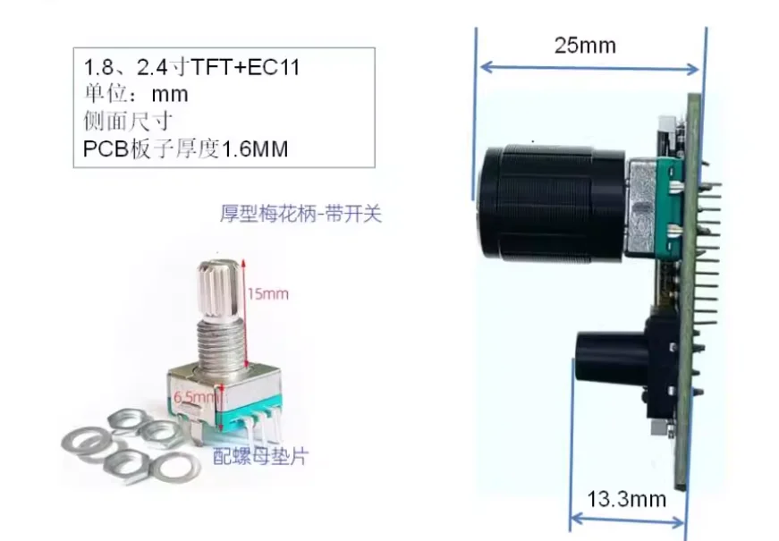 Este módulo es una combinación del módulo de interfaz OLEDIIC y codificador rotatorio EC11, los dos no están relacionados, pero solo se coloca una placa, se convierte en un módulo integrado, extra con botones de retorno y confirmación, la interfaz clave también es independiente, puede Elija utilizarlo de acuerdo con el uso real de la situación.Diseño todo en uno, bricolaje más simple y hermoso, conveniente.