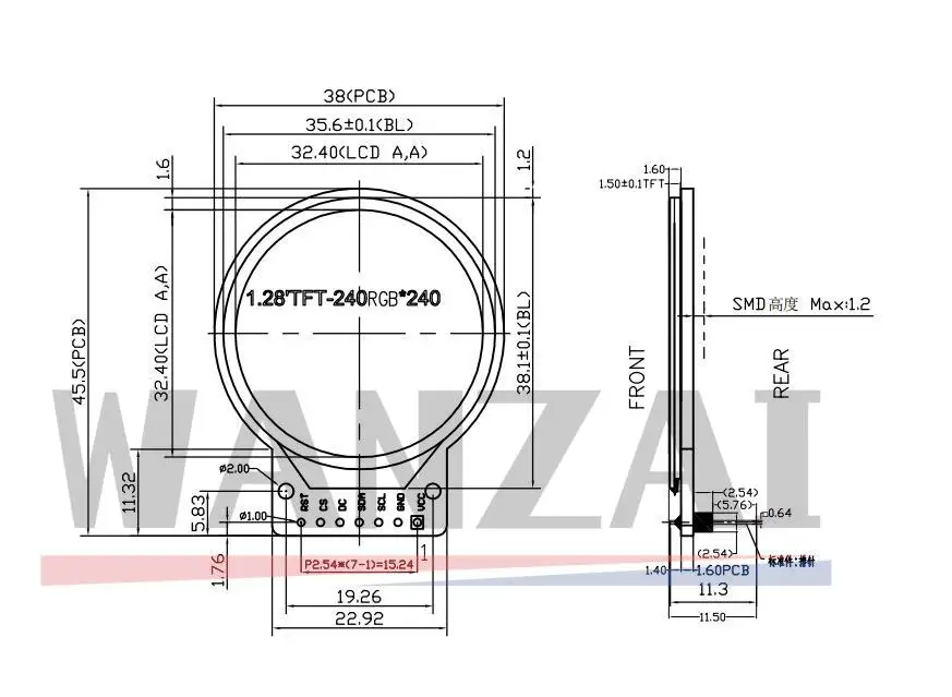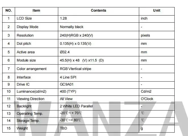 Pantalla TFT, módulo de pantalla LCD TFT de 1,28 pulgadas, controlador redondo RGB 240*240 GC9A01, interfaz SPI de 4 cables, PCB 240x240 para Arduino