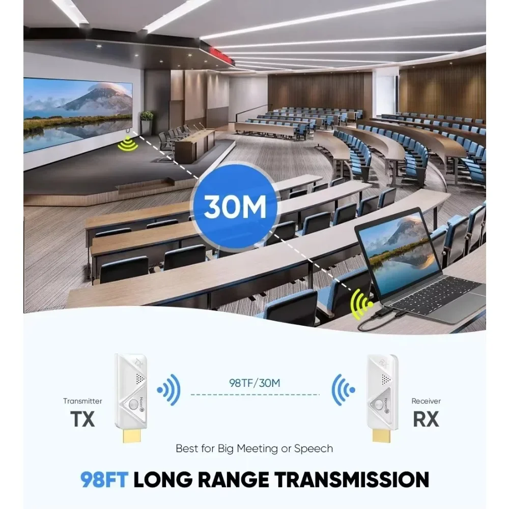 Este extensor inalámbrico es compatible con el estándar HDMI1.3, admite el estándar HDCP1.2 y tiene tecnología de protección de contenido digital de alto ancho de banda. Admite Transmisión de Frecuencia dual 2,4G/5G, con una distancia de transmisión máxima de 30 metros, sin necesidad de instalar o configurar controladores.