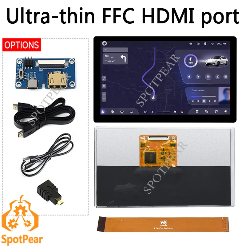 Comprar Pantalla ultradelgada de 7 pulgadas para Raspberry Pi, pantalla IPS/QLED integrada con puerto HDMI y Cable FFC, 1024x600